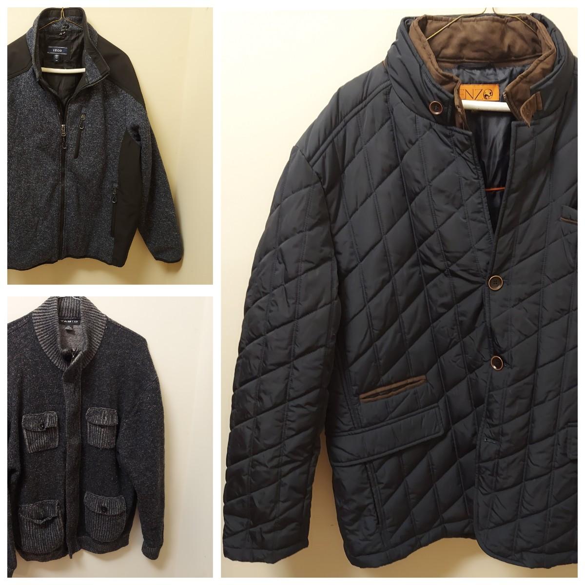Lot includes three men's jackets with elbow patches that average size large/xl. The Enzo Tovare jacket and Tagio sweater coat are marked XXL. The Izod jacket is marked Large. All three fit similarly, more like a large/xl. Please see photos for details. Shipping available