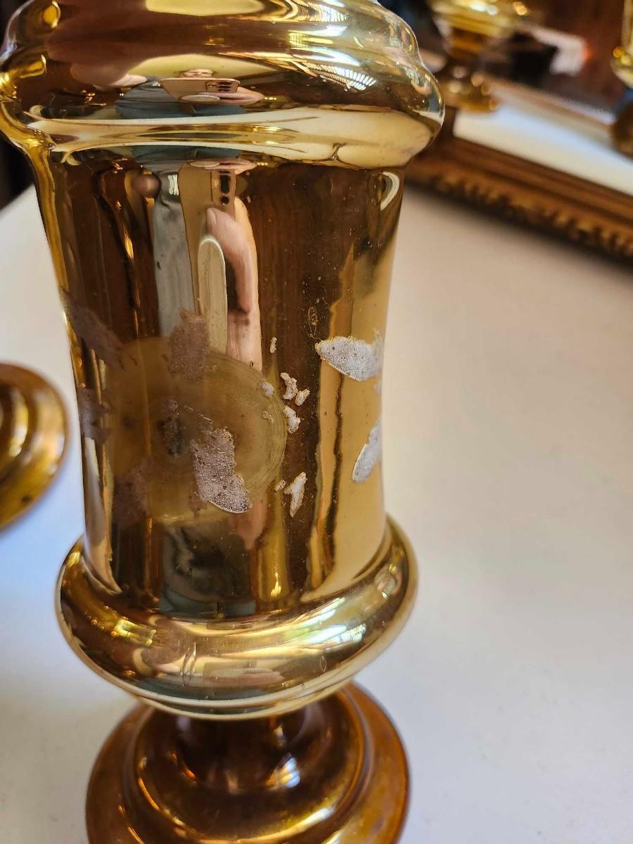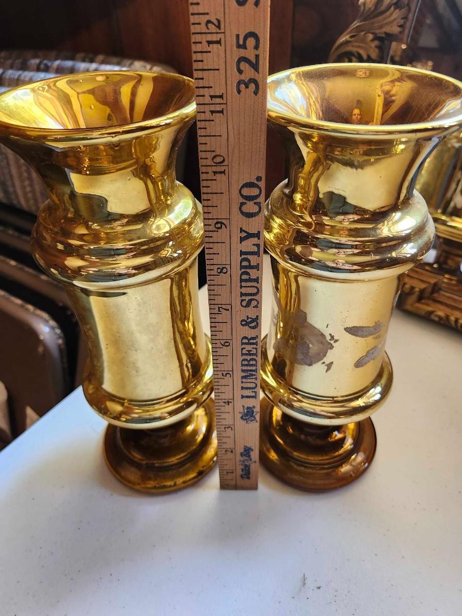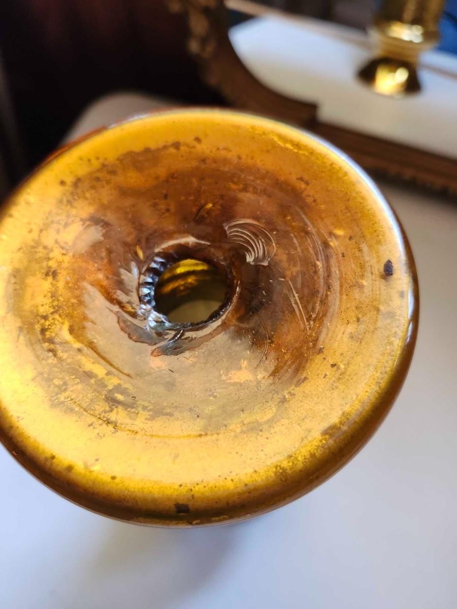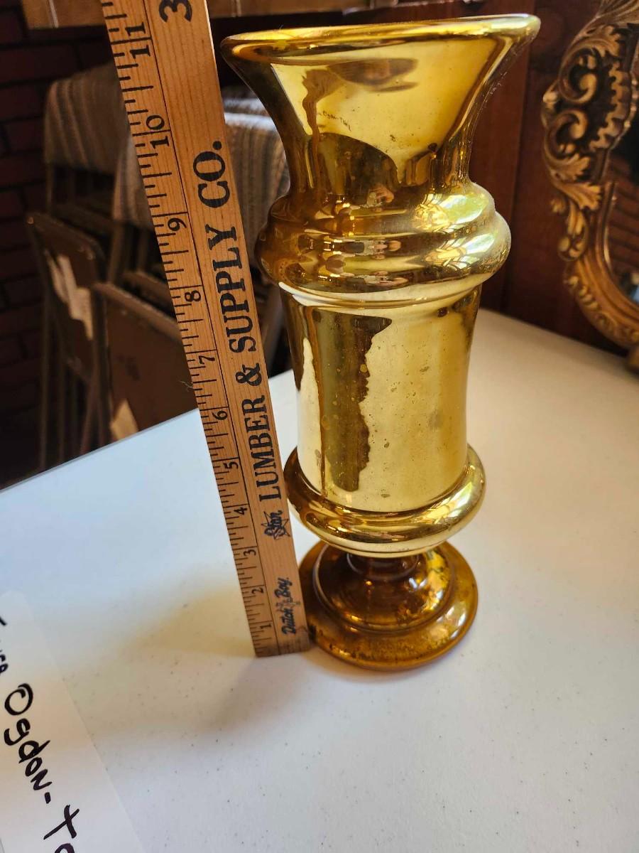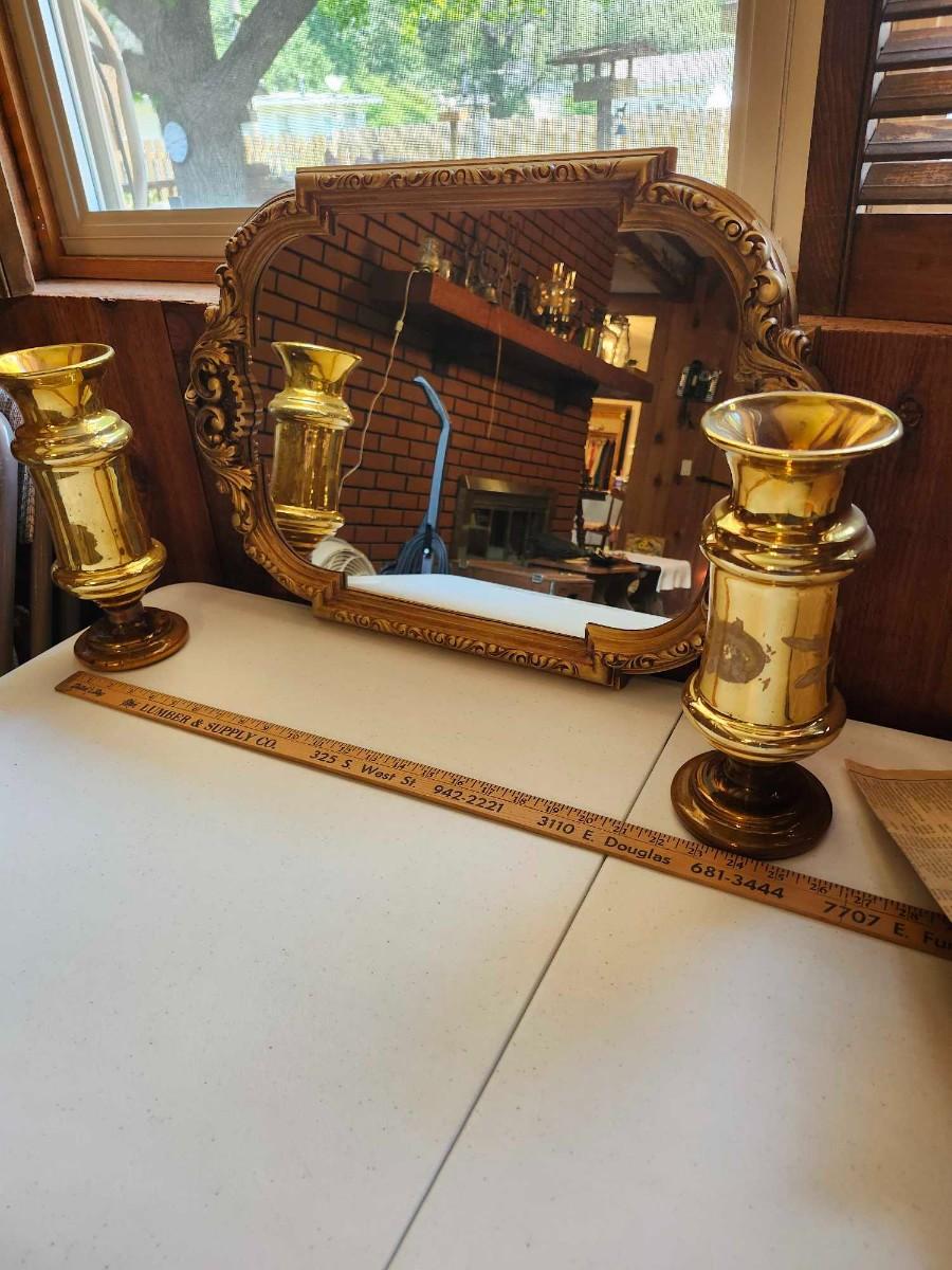 Two 1970s vintage chunky glass candle holder vase golden yellow MCM and Mirror please pics for size and condition