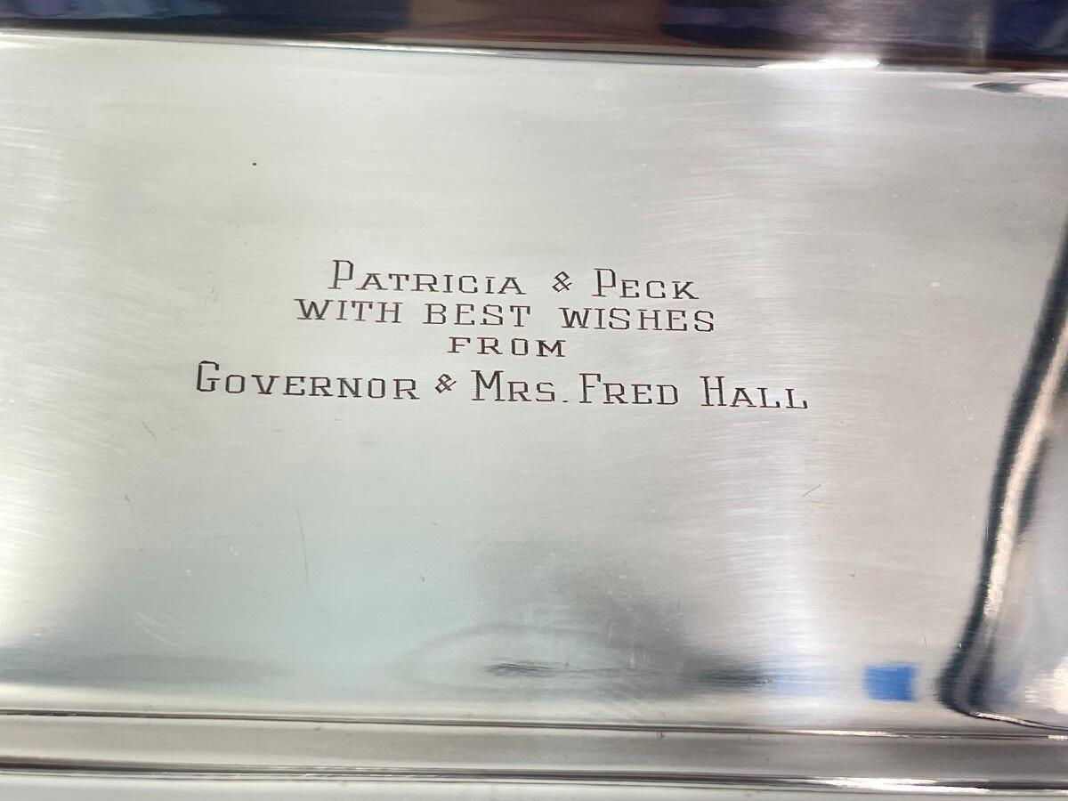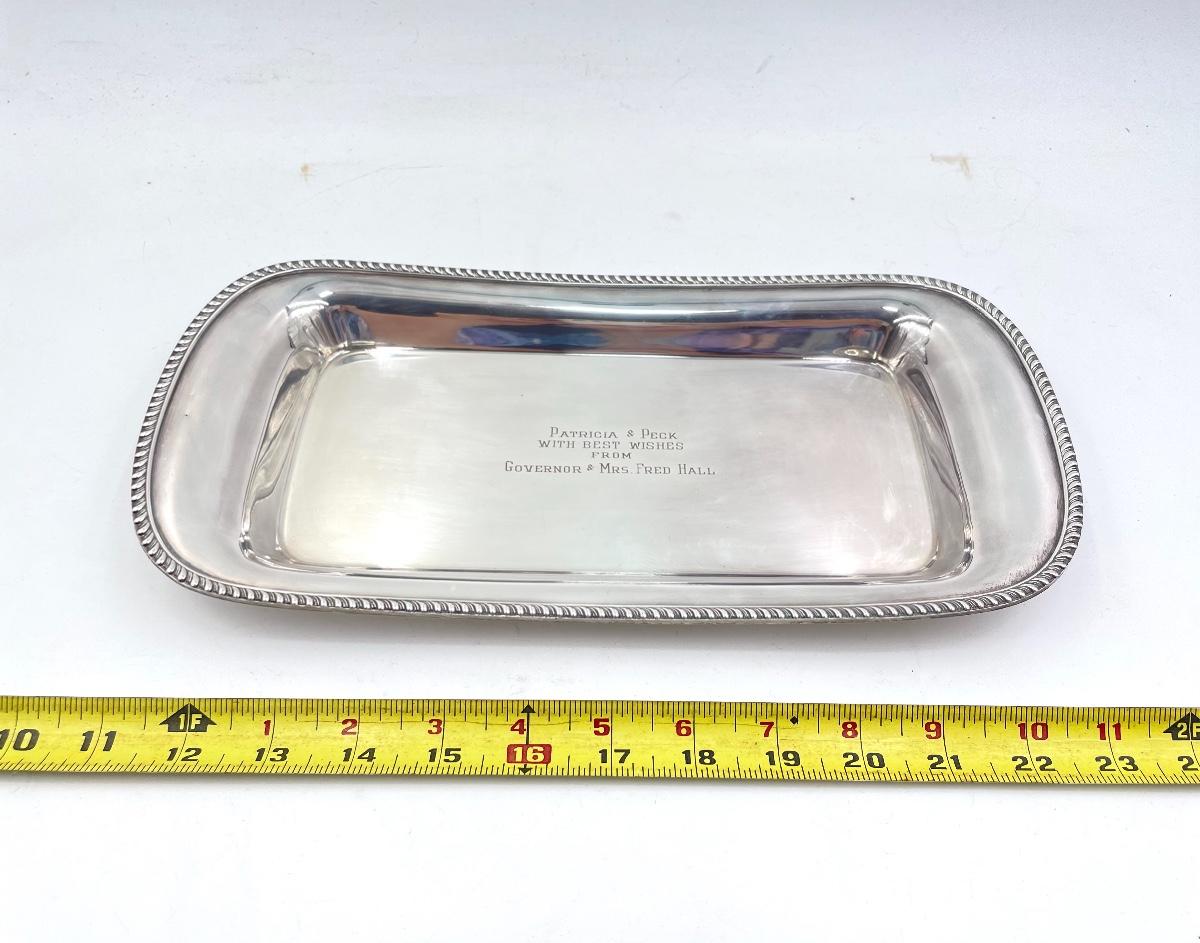 “EPC POOLE SILVER” SILVERPLATE 13” RECTANGULAR ENGRAVED TRAY