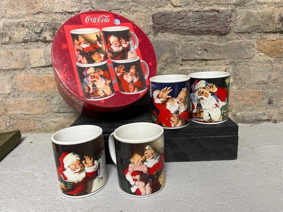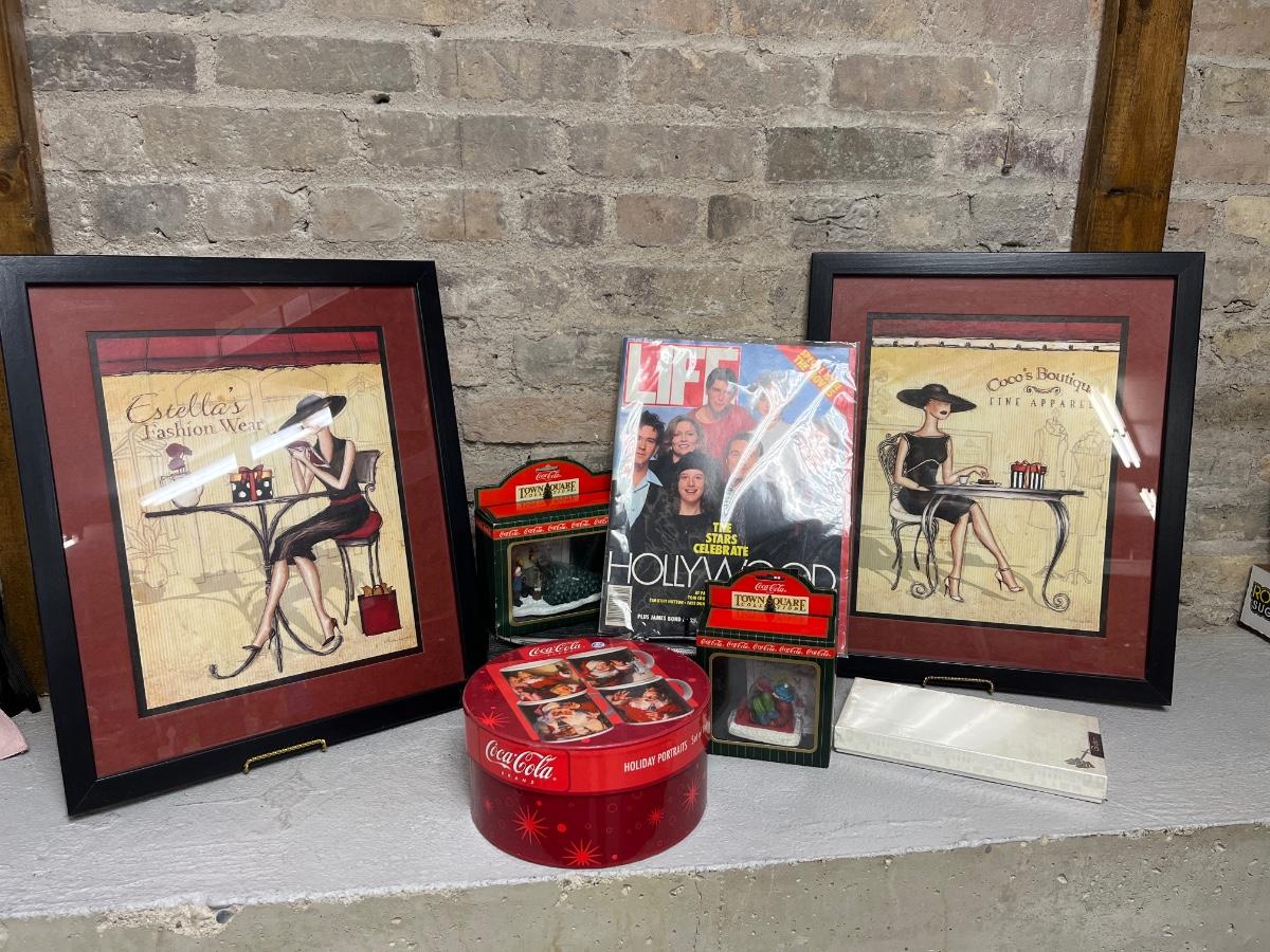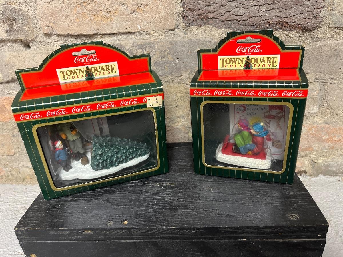 Coca Cola Christmas mugs in decorative box, two Coca Cola Town Square accessories, Toboggan Sledders and Cutting The Christmas Tree in original packaging, set of Home Interior pictures, The best Norwegian kitchen shears, and set of Gerber mimings still sealed in box. the picture is what they should look like, I just didn't want to open the box.