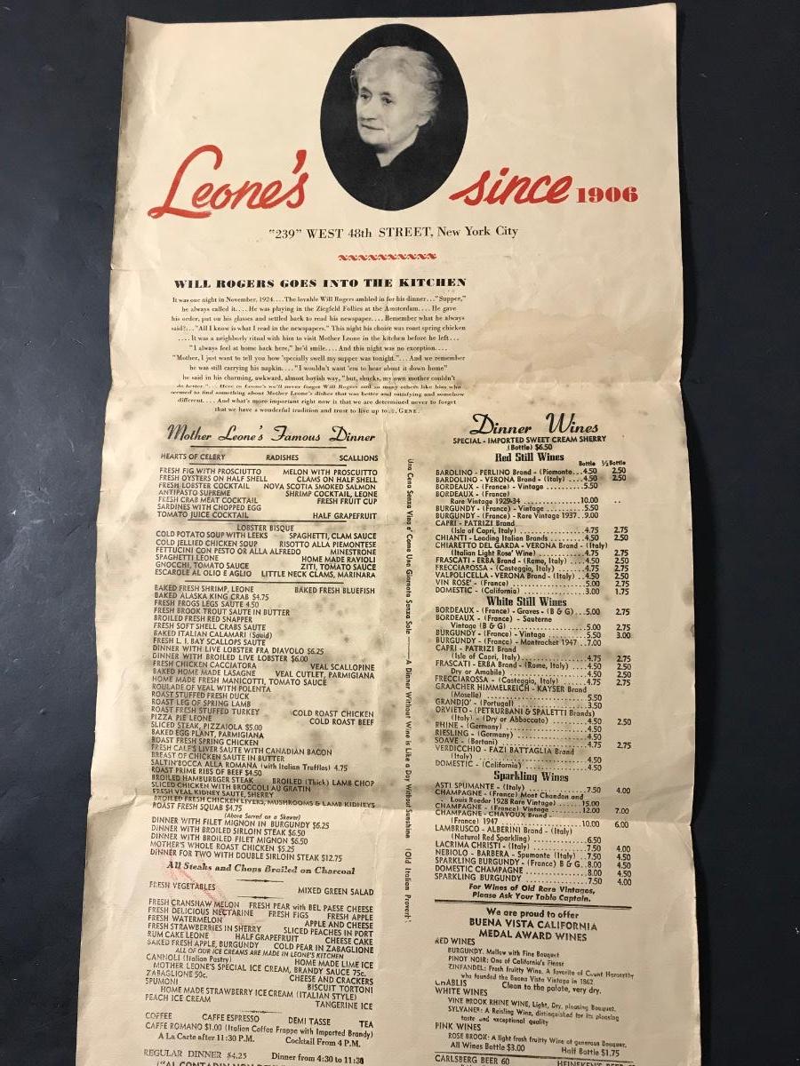 Original menu from the famous New York restaurant