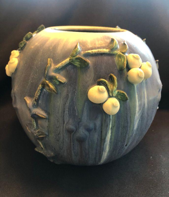 Ephraim Faience Pottery “Snowberry” Vase by Mary Pratt (retired 2010)