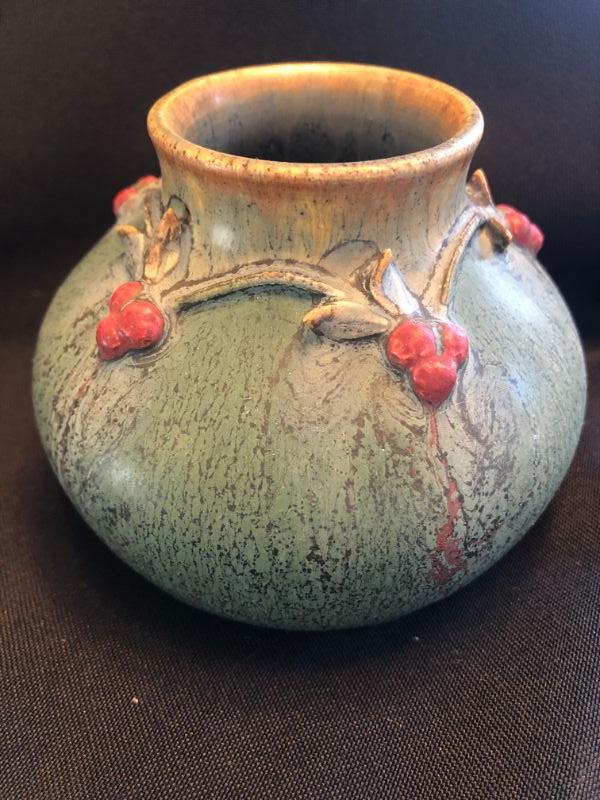 Ephraim Faience Pottery Vase “Garland Of Berries” (retired) by Mary Pratt