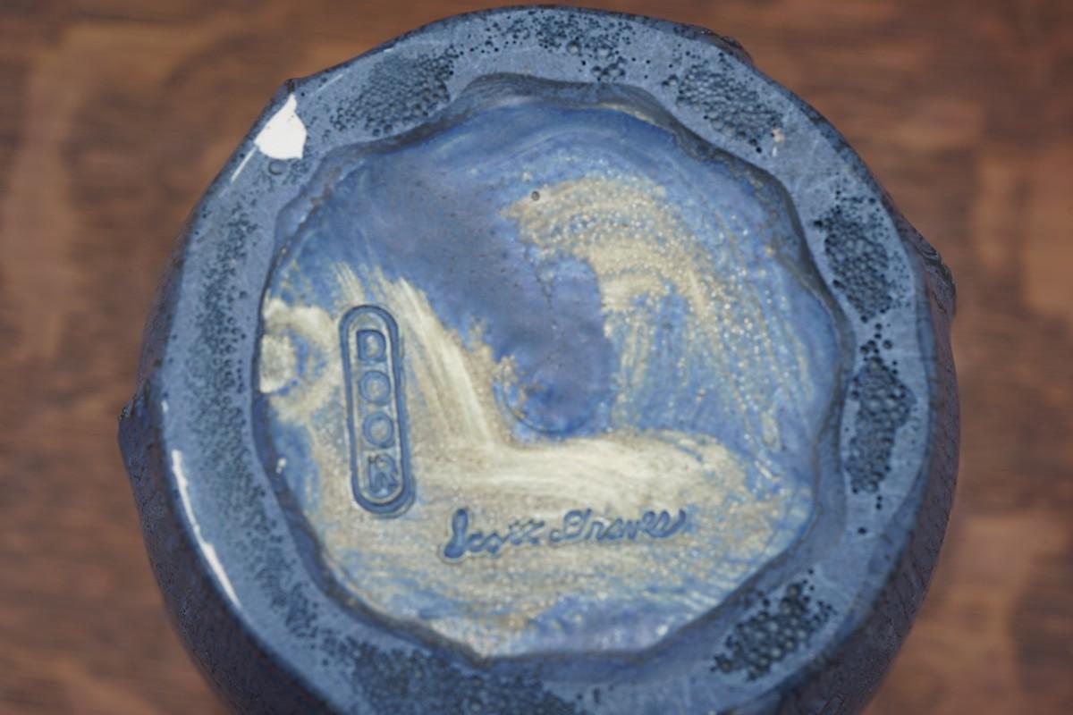DOOR POTTERY VASE BLUE SIGNED SCOTT DRAVES 8"