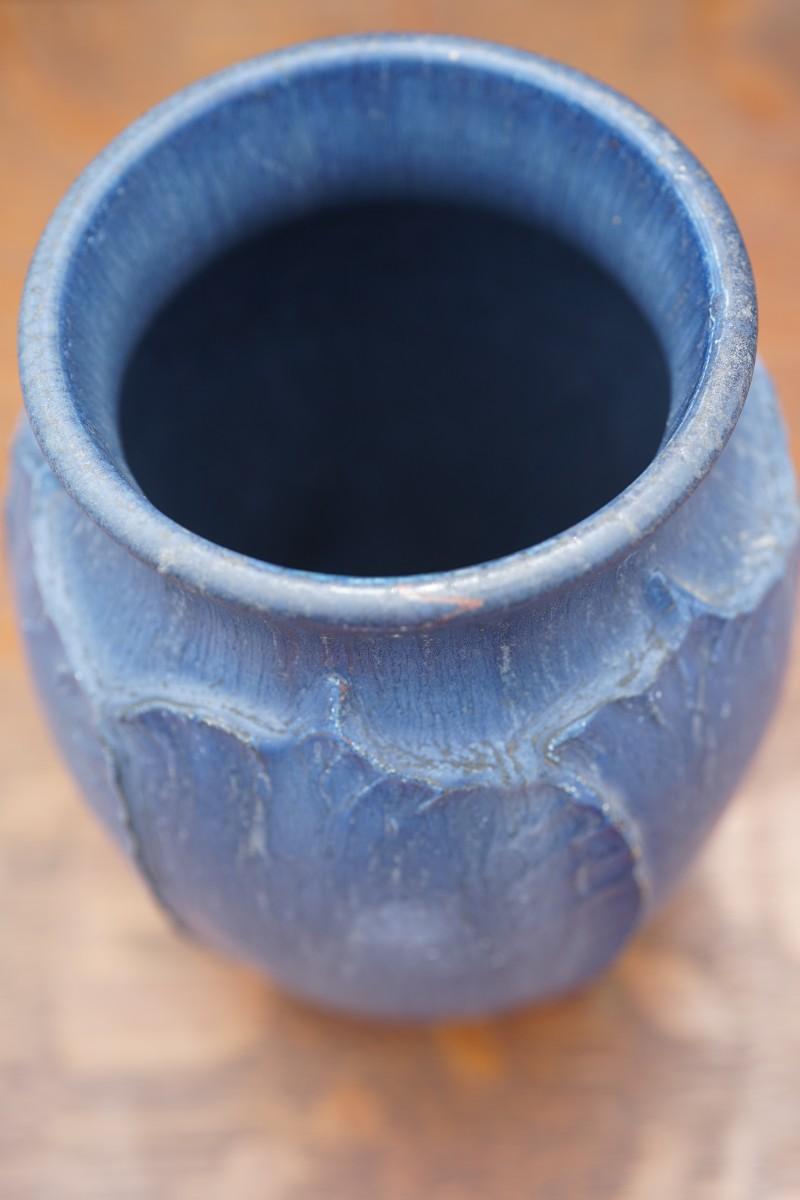 DOOR   POTTERY VASE BLUE SIGNED SCOTT DRAVES 8"