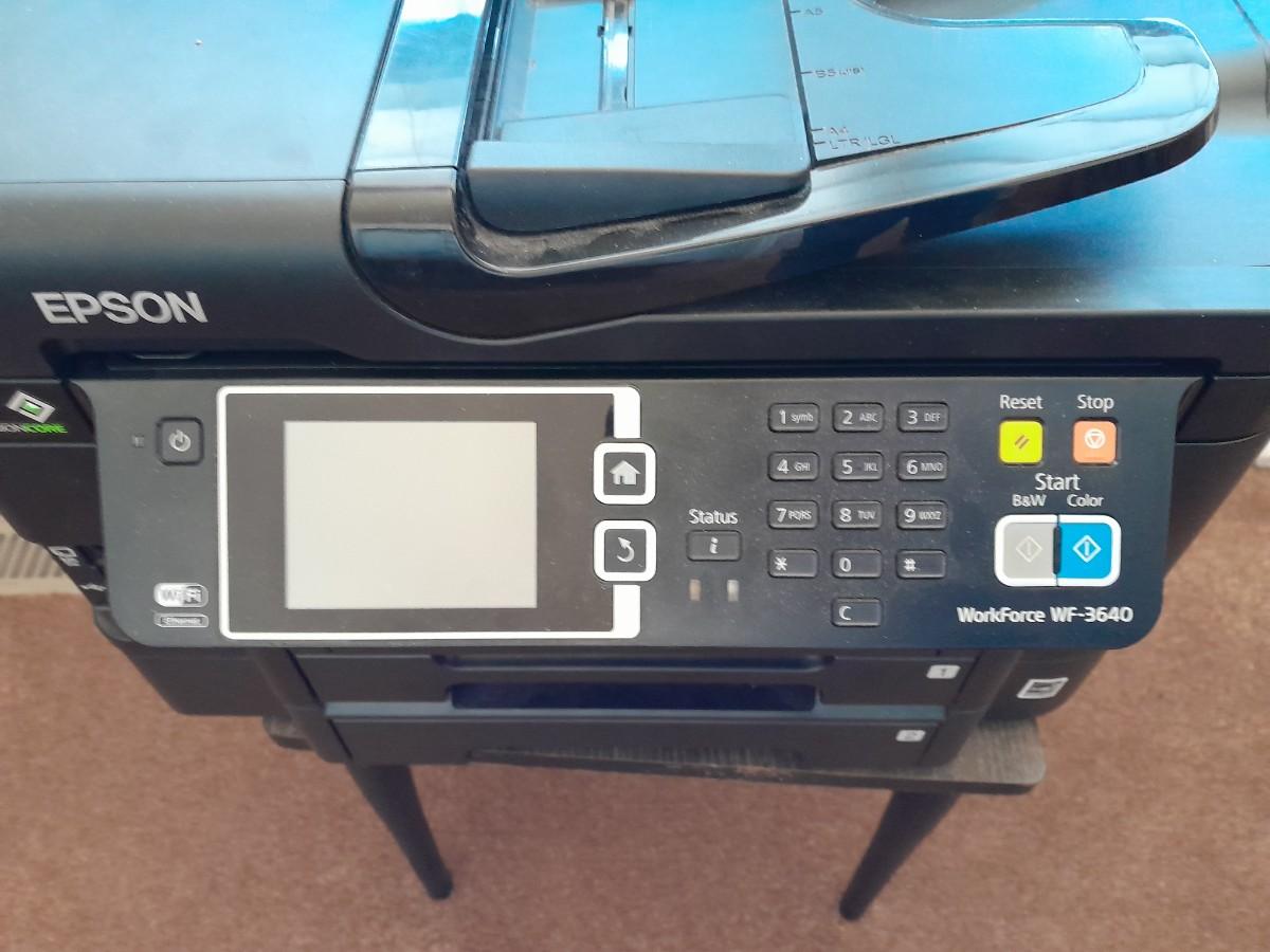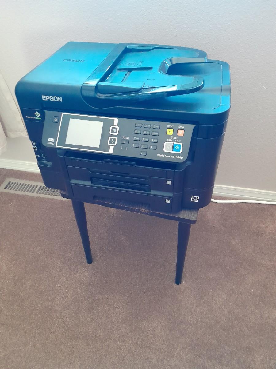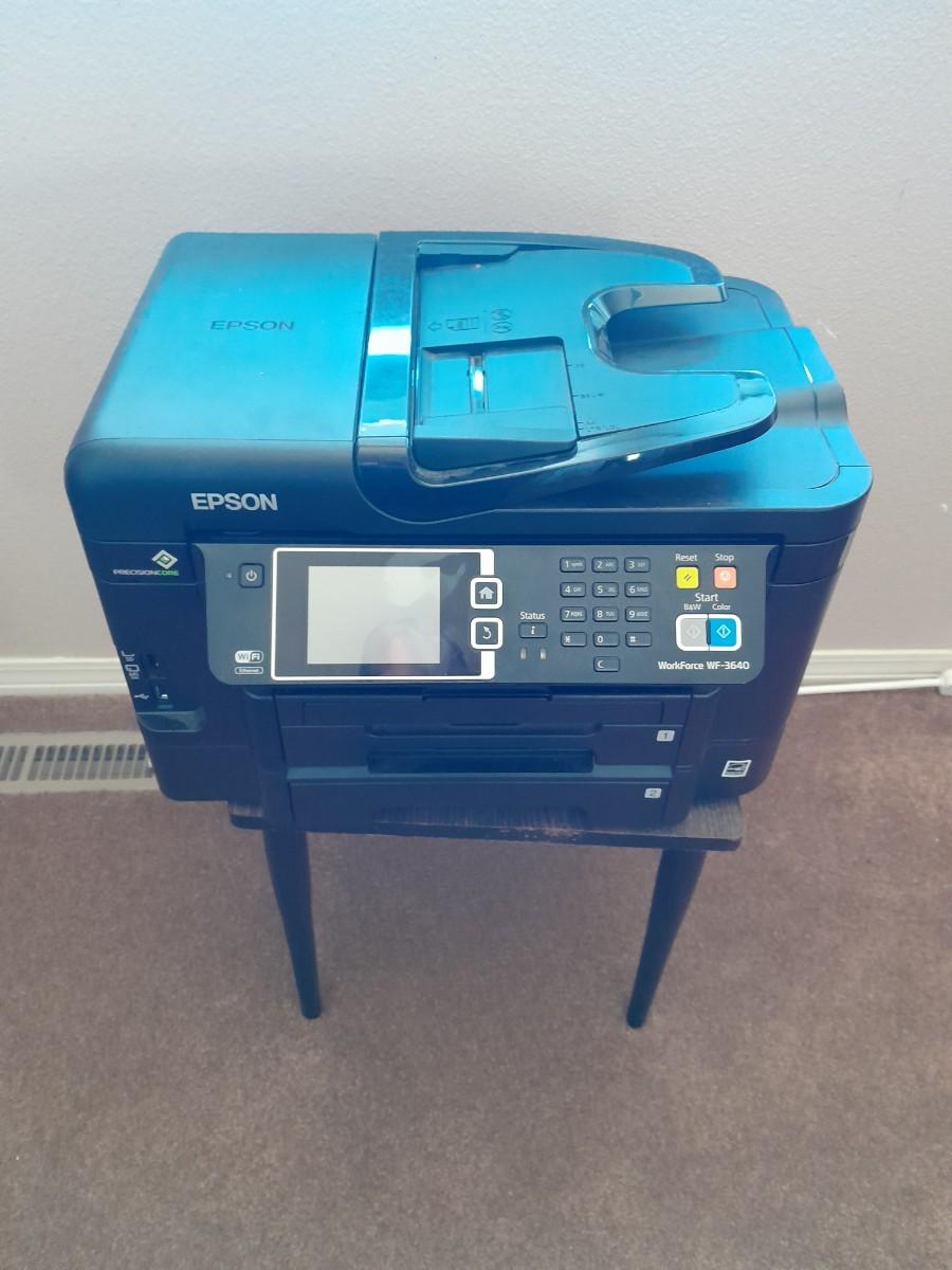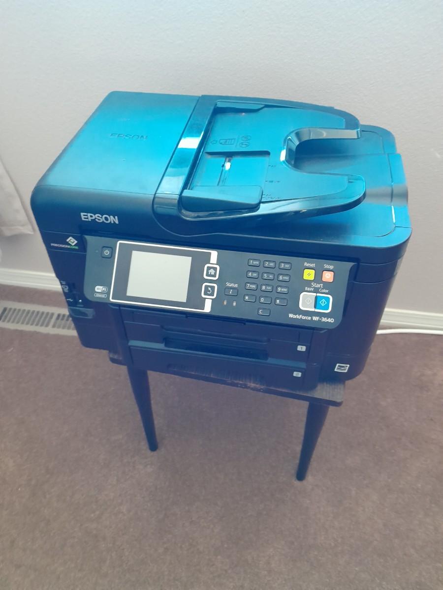 The WorkForce WF-3640 offers enhanced productivity and flexible paper handling for small offices. Powered by Epson's new PrecisionCoreâ„¢ printing technology, the WF-3640 delivers Performance Beyond Laserâ„¢. This breakthrough all-in-one printer produces fast, print-shop-quality color prints and laser-sharp black and color text. Plus, save on ink; get up to 40 percent lower printing cost vs. color laser1. This wireless printer easily prints from tablets and smartphones2. Three paper trays offer added versatility “” load up to 500 sheets in the front, and use the rear tray for envelopes and specialty paper. Additional features include auto 2-sided print/copy/scan/fax and a 3.5" color touchscreen.