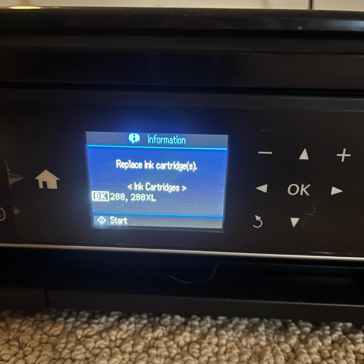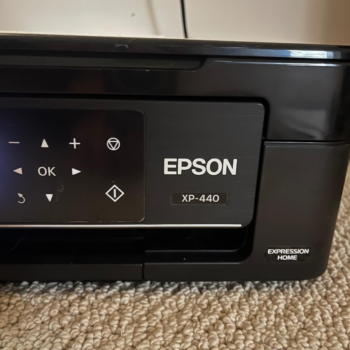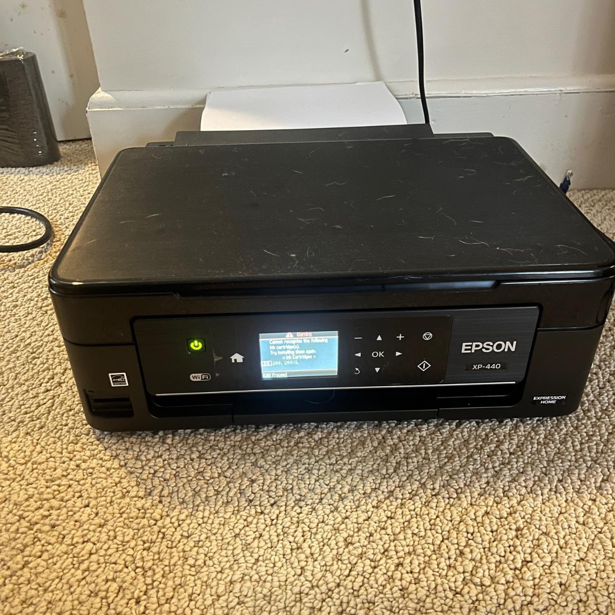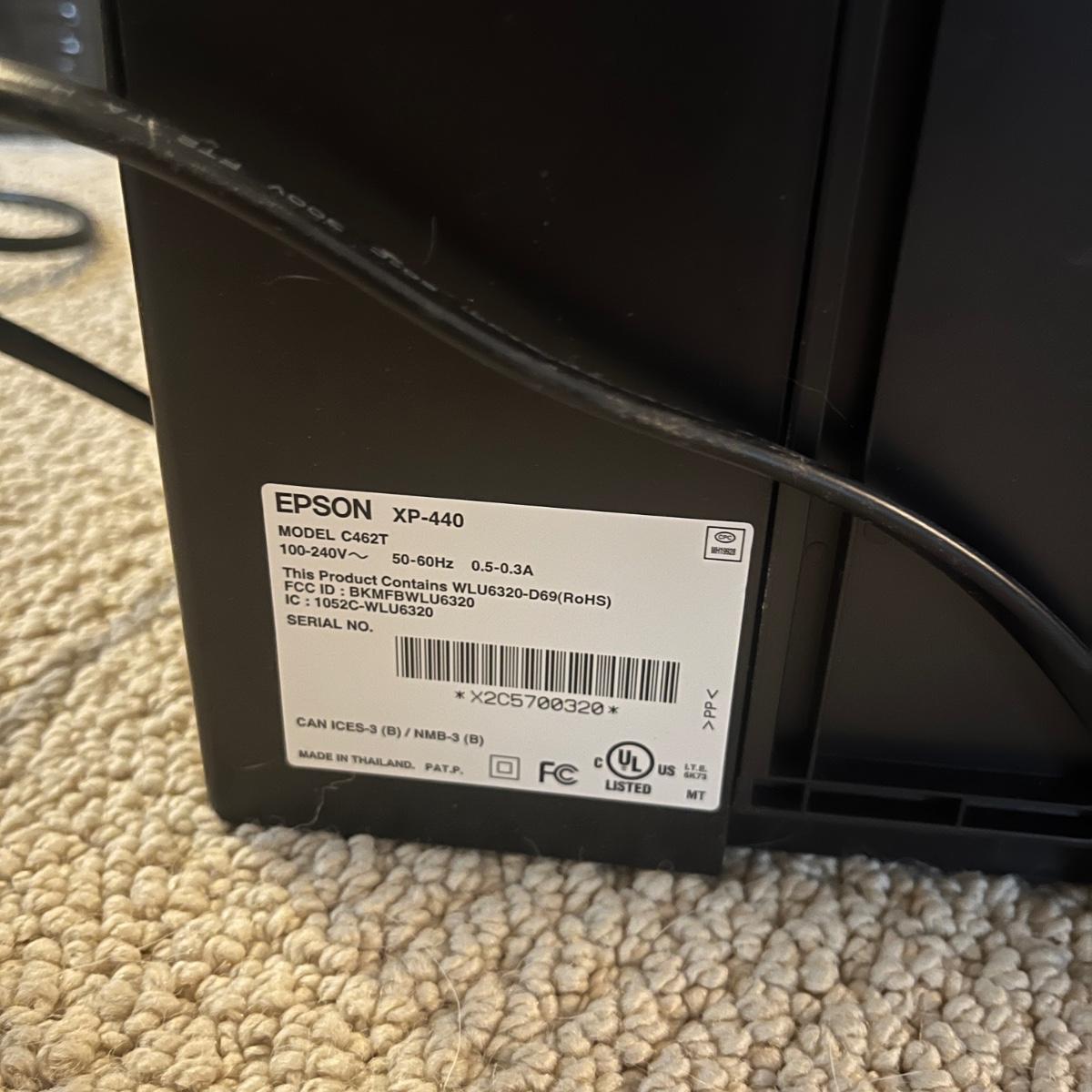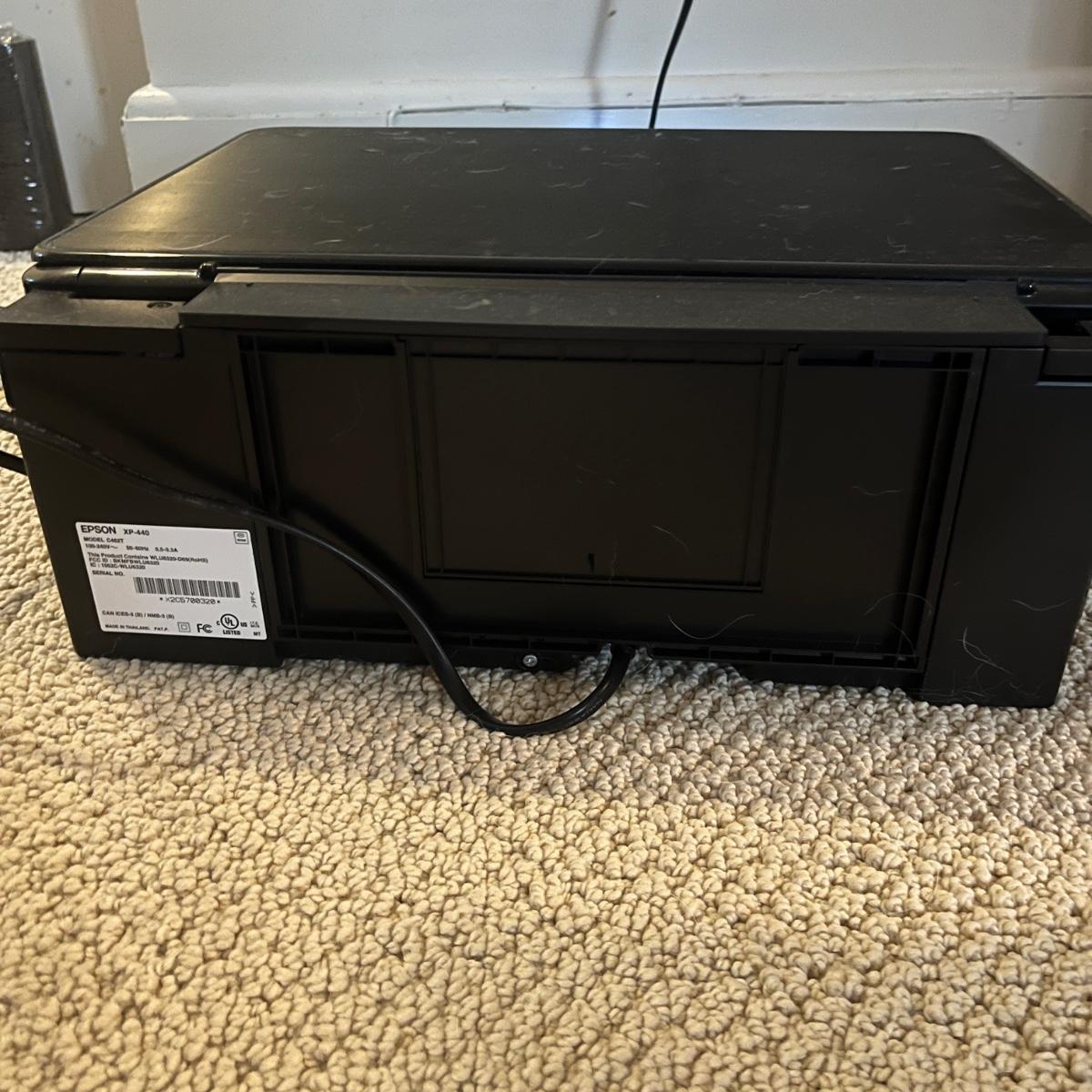 Lot includes a APC battery backup and an Epson printer with built in scanner and copier. Both items powered on when plugged in. Printer measures 12” x 16” x 6”. Some surface dust.