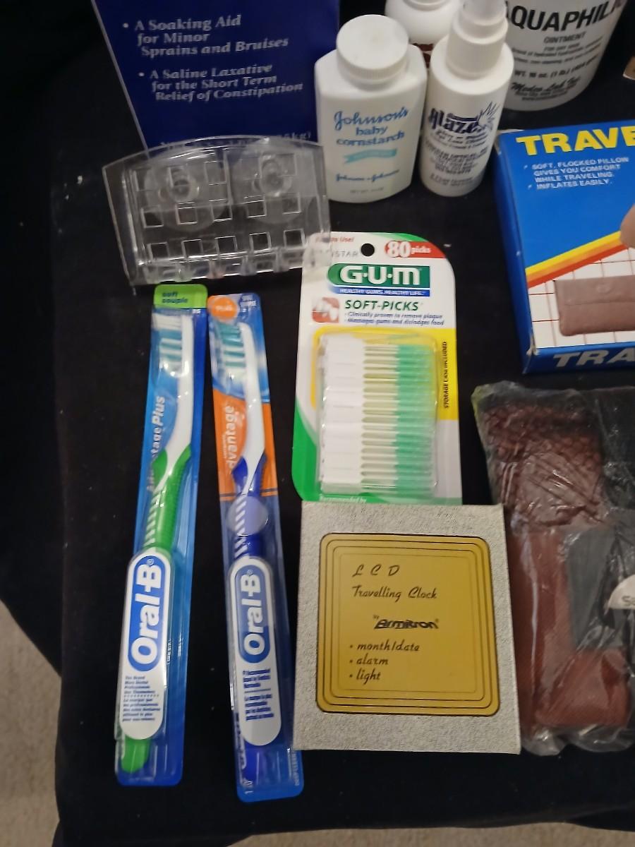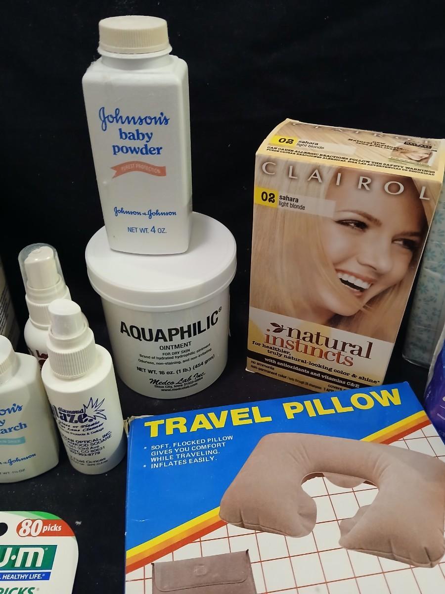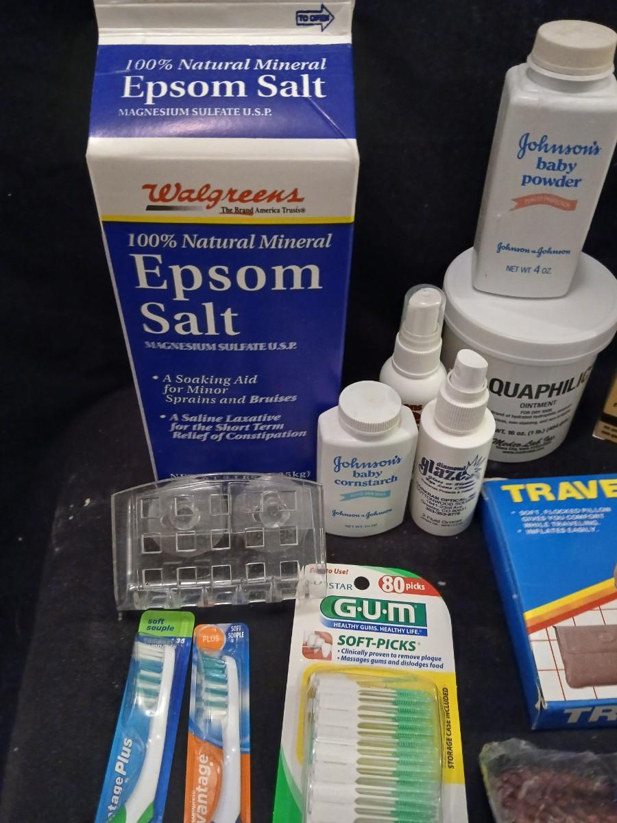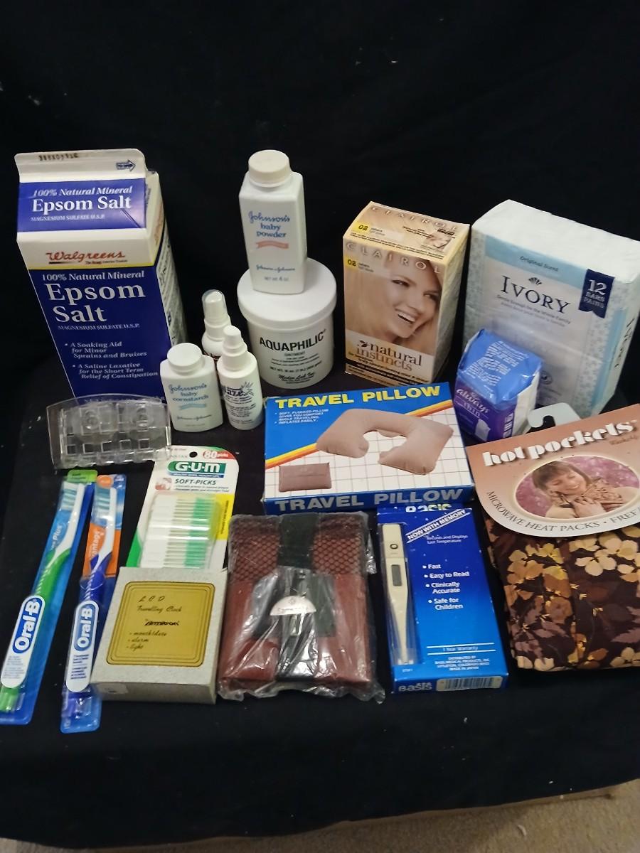 Epson salt, new toothbrushes, hair dye, thermometer, heat wrap, and much more