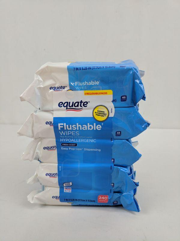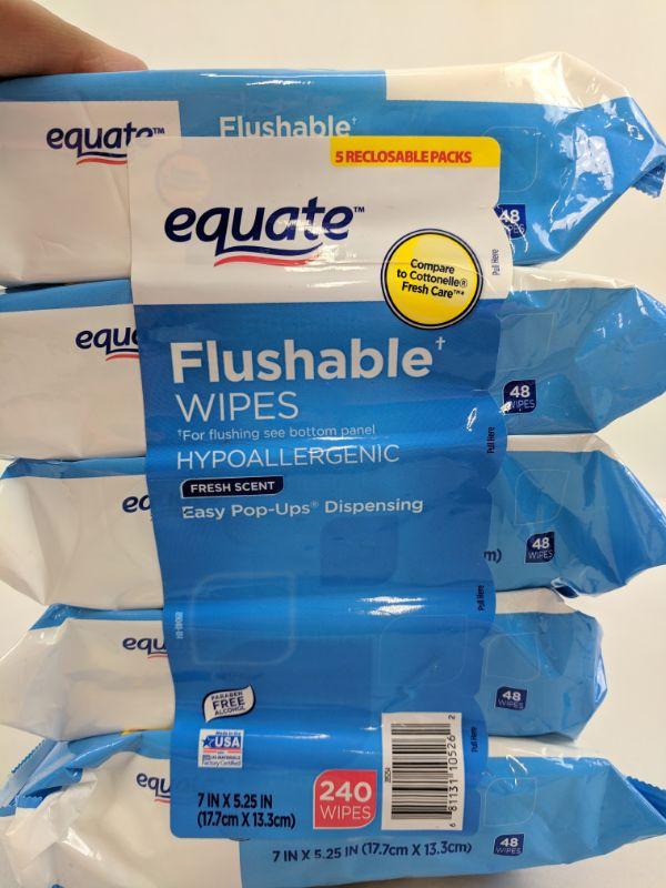 Equate Fresh Scent Flushable Wipes, 5 pack, 240 count - New