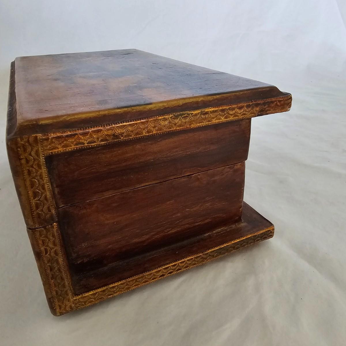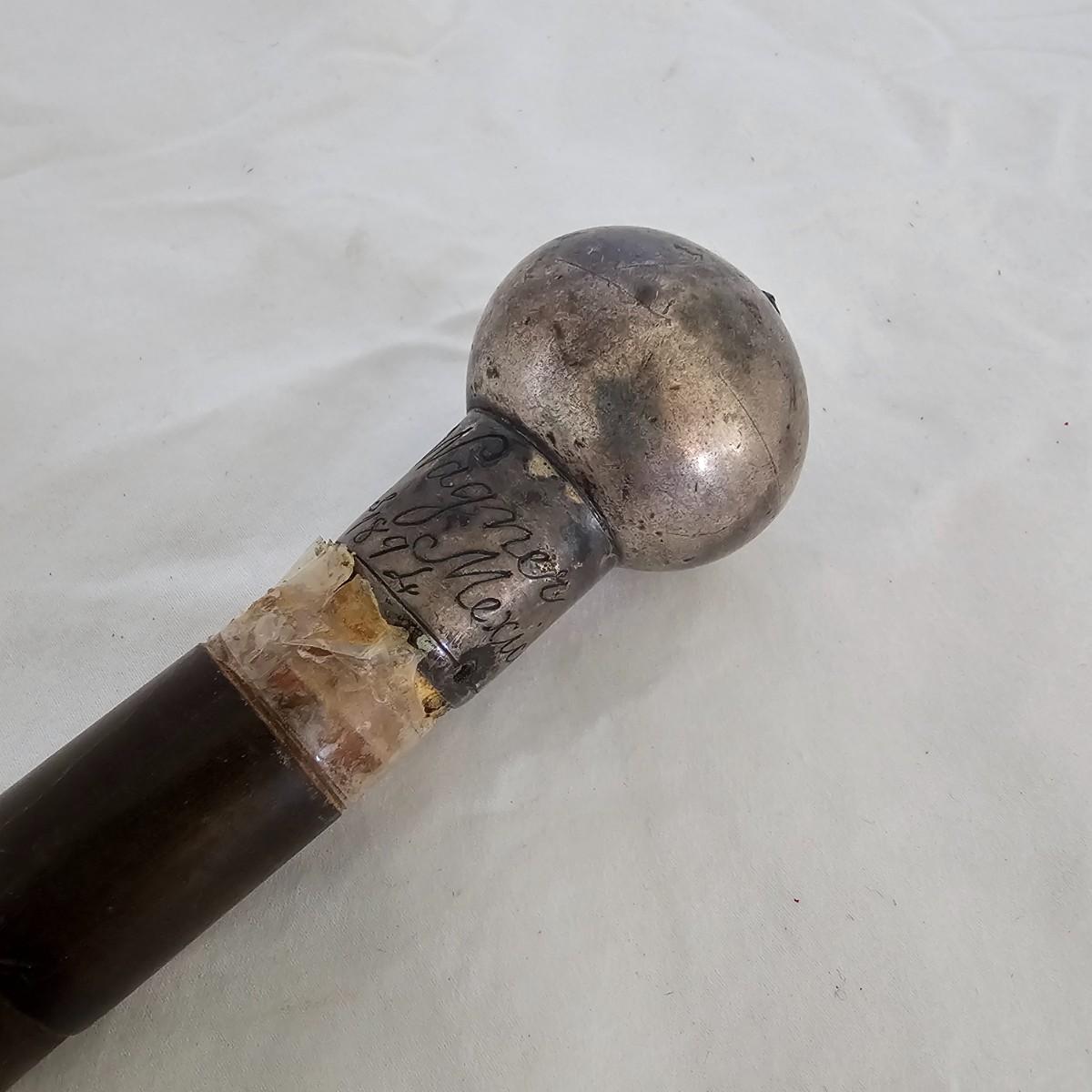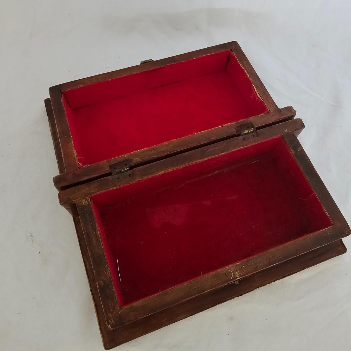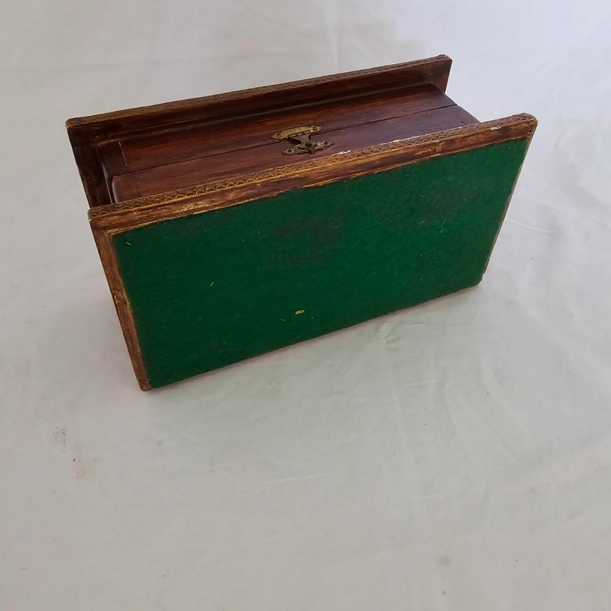 Wooden decorated box with steeplechase riders on lid and opens to red felt lined interior. Box measures 10" x 5.75" x 4.5"H. Riding crop has split leather tips, what appears to be a silver cane head that is inscribed. Top is somewhat askew on crop. May have been reattached. See photos for details. Shipping available.