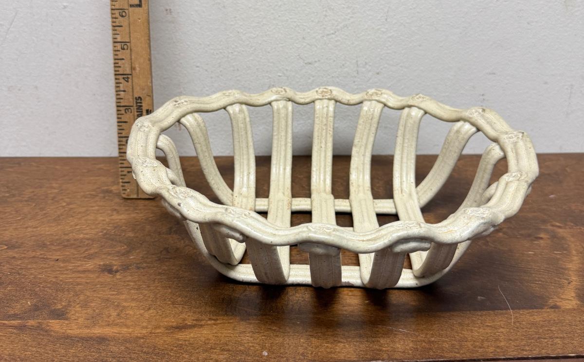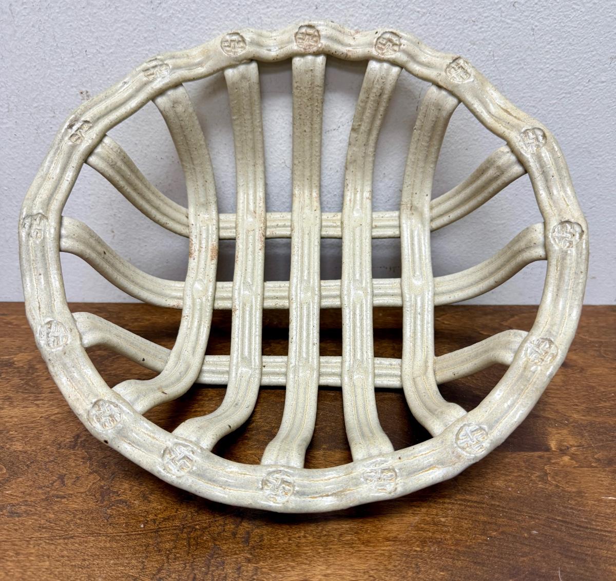 Approx. 10" diameter, 3.5" high. Good condition, no cracks or chips.