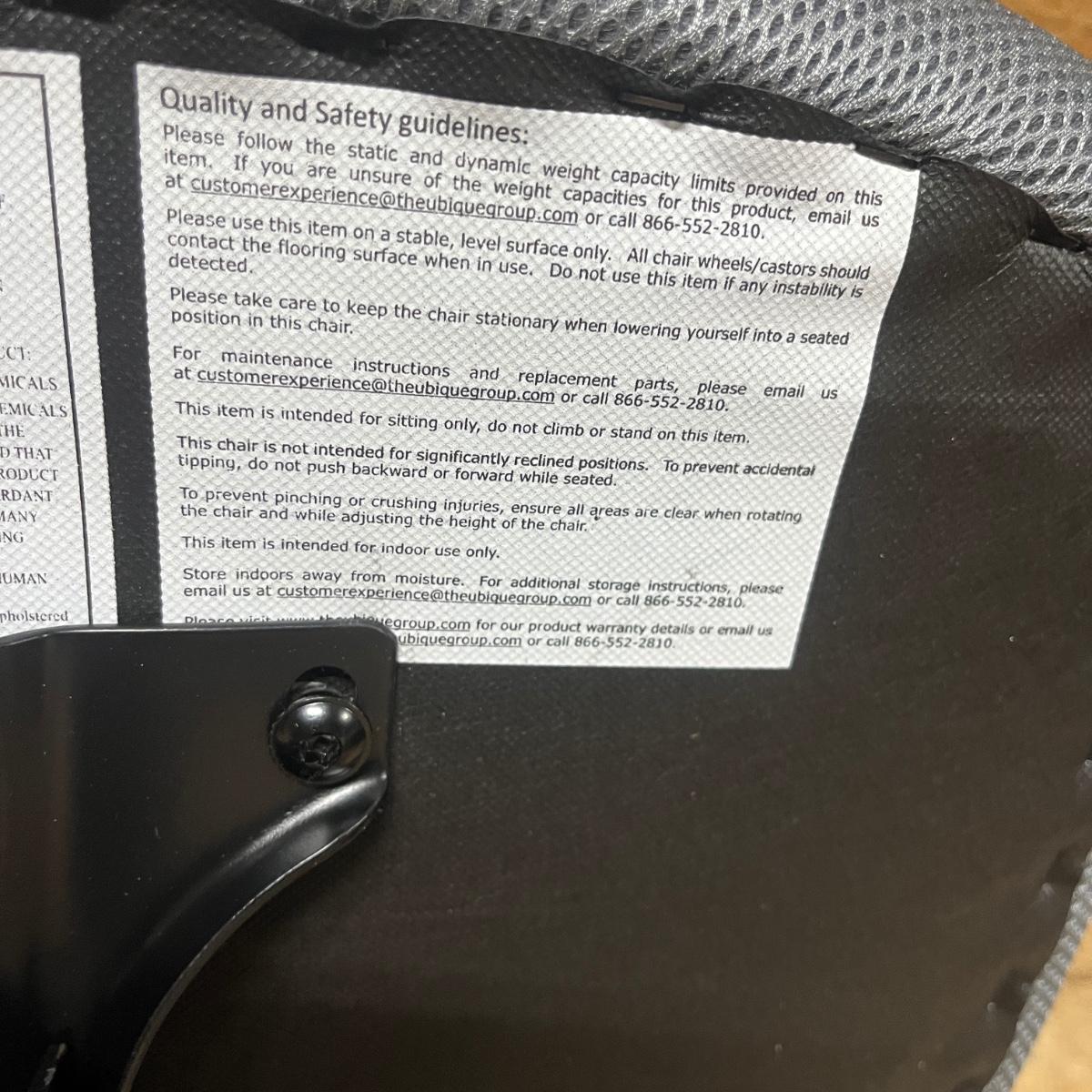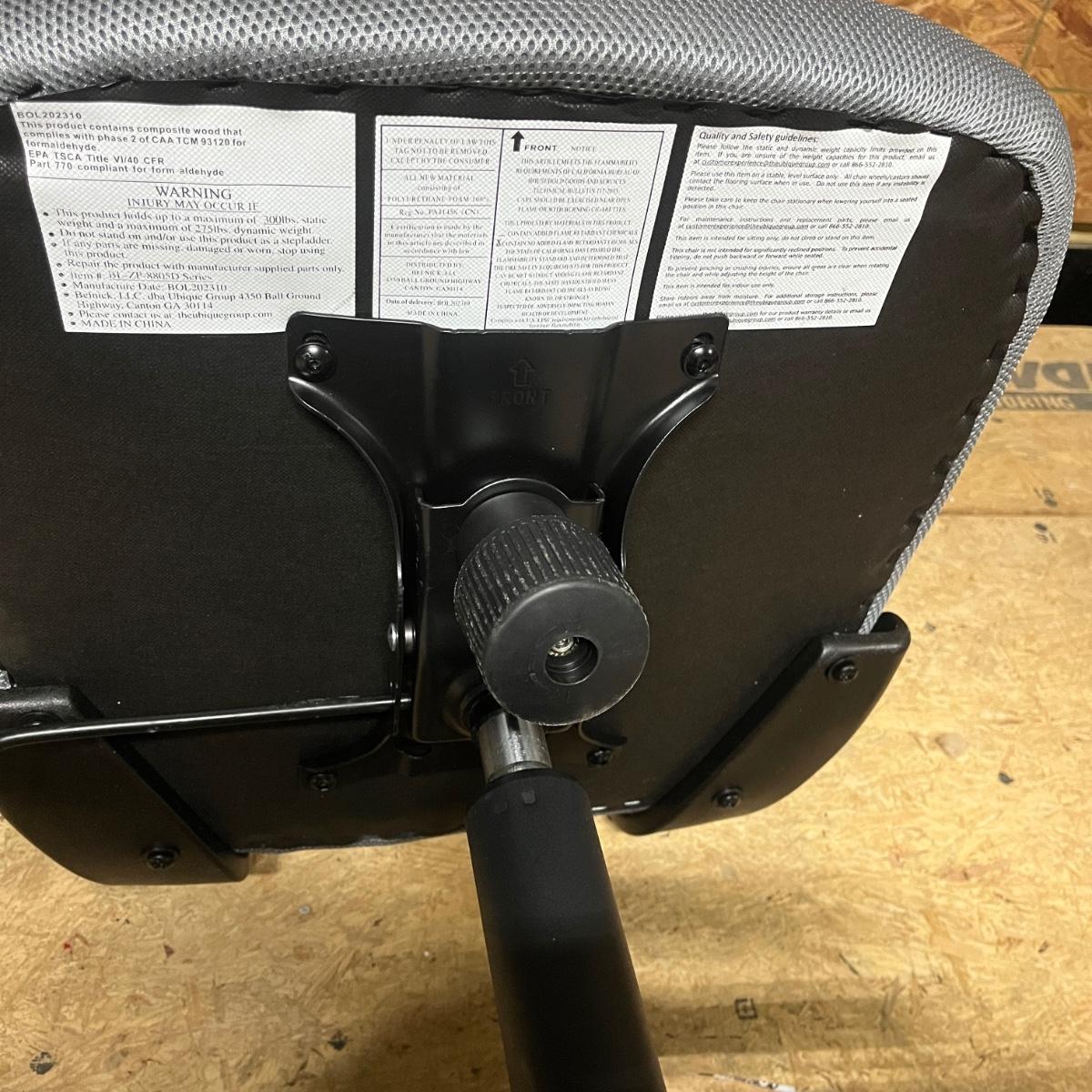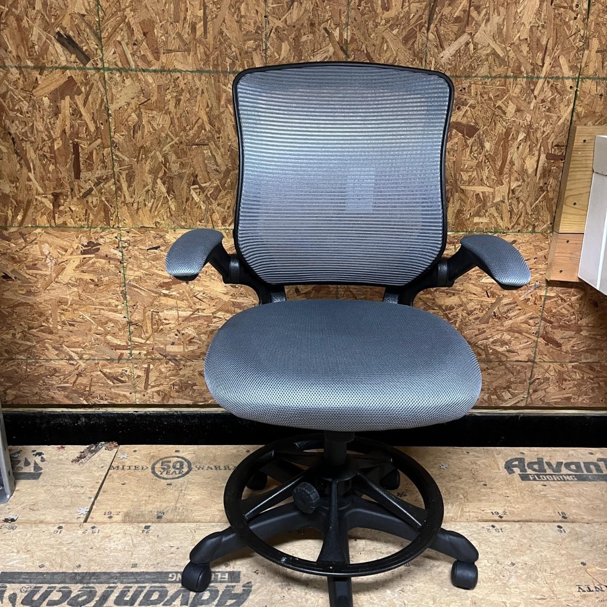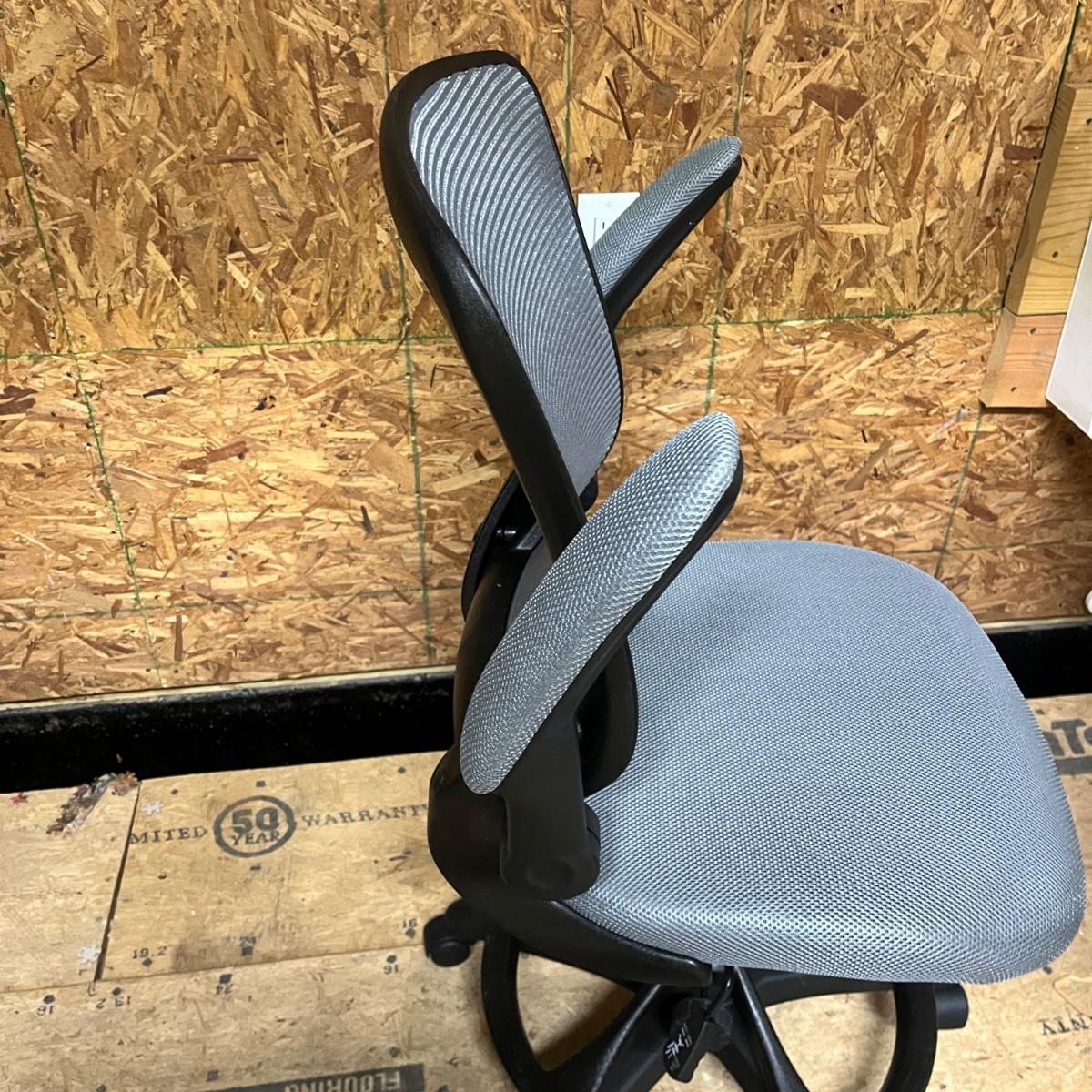Lot includes an ergonomic office chair with moving armrests, mesh back and adjustable height. Chair measures 25.5” x 24” x 49.5”H at full height with a 49.5” seat height and 25.5” x 24” x 42.5” with a 21.5” seat height when at lowest point.