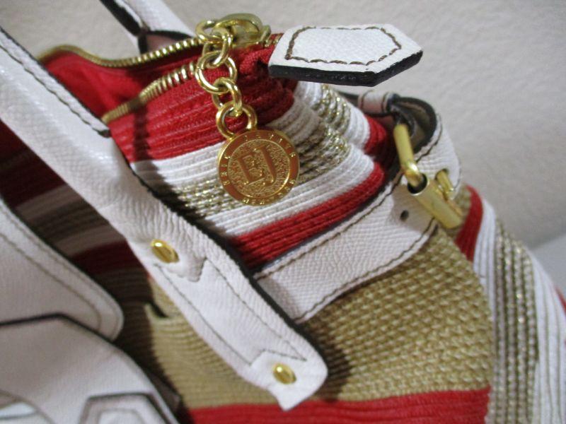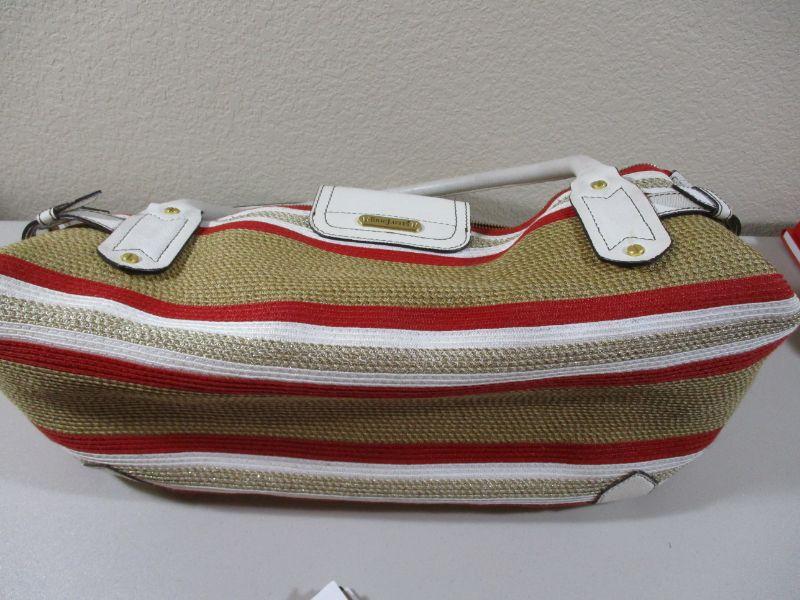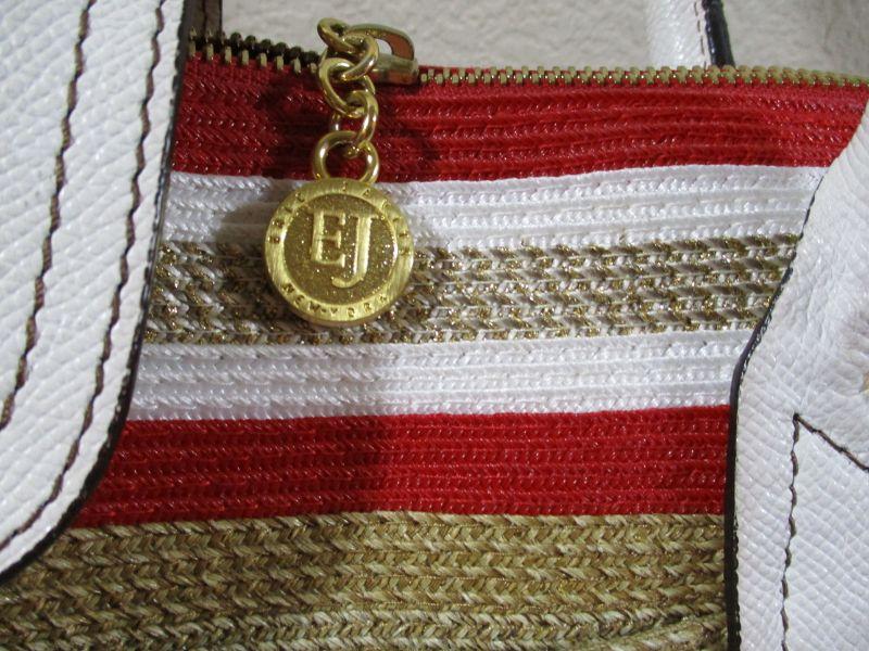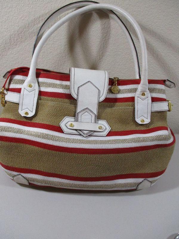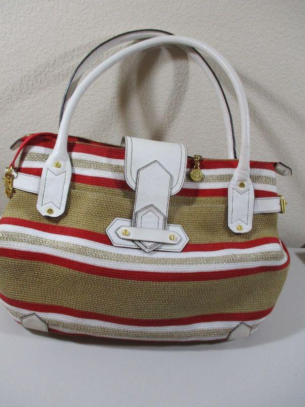 Eric Javitz Bag Red white and Beige Large  17x7x11 1/2