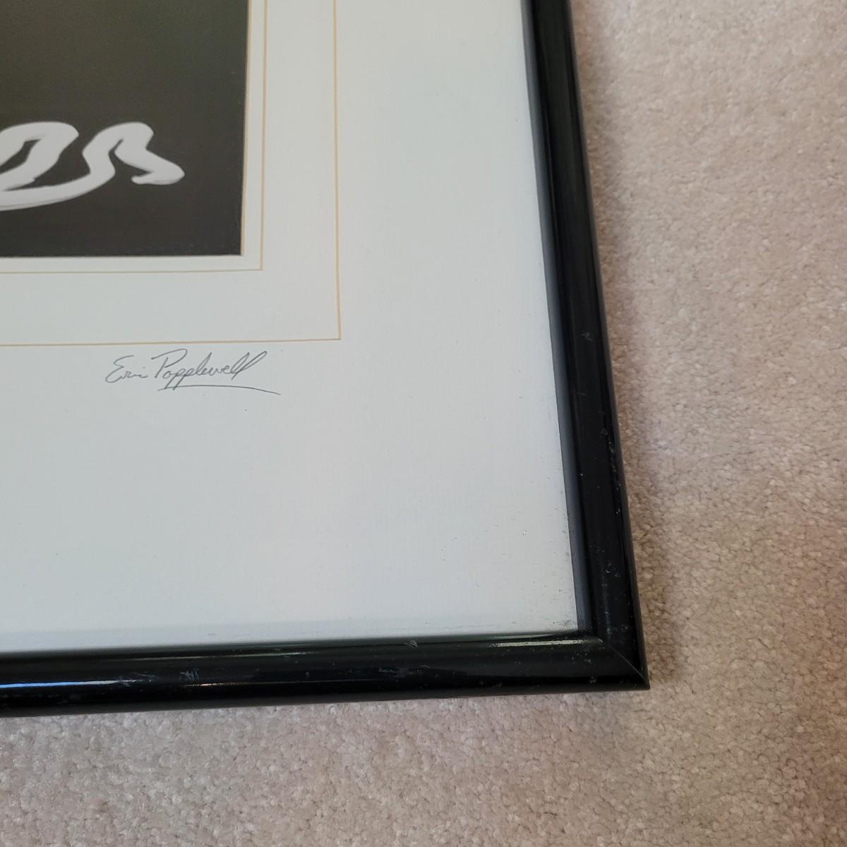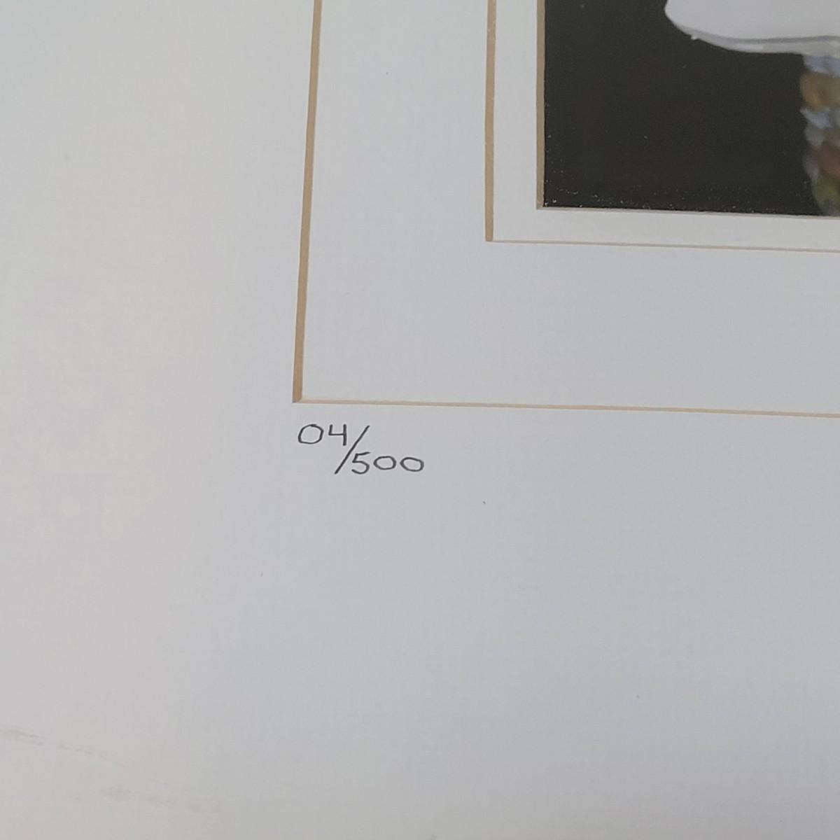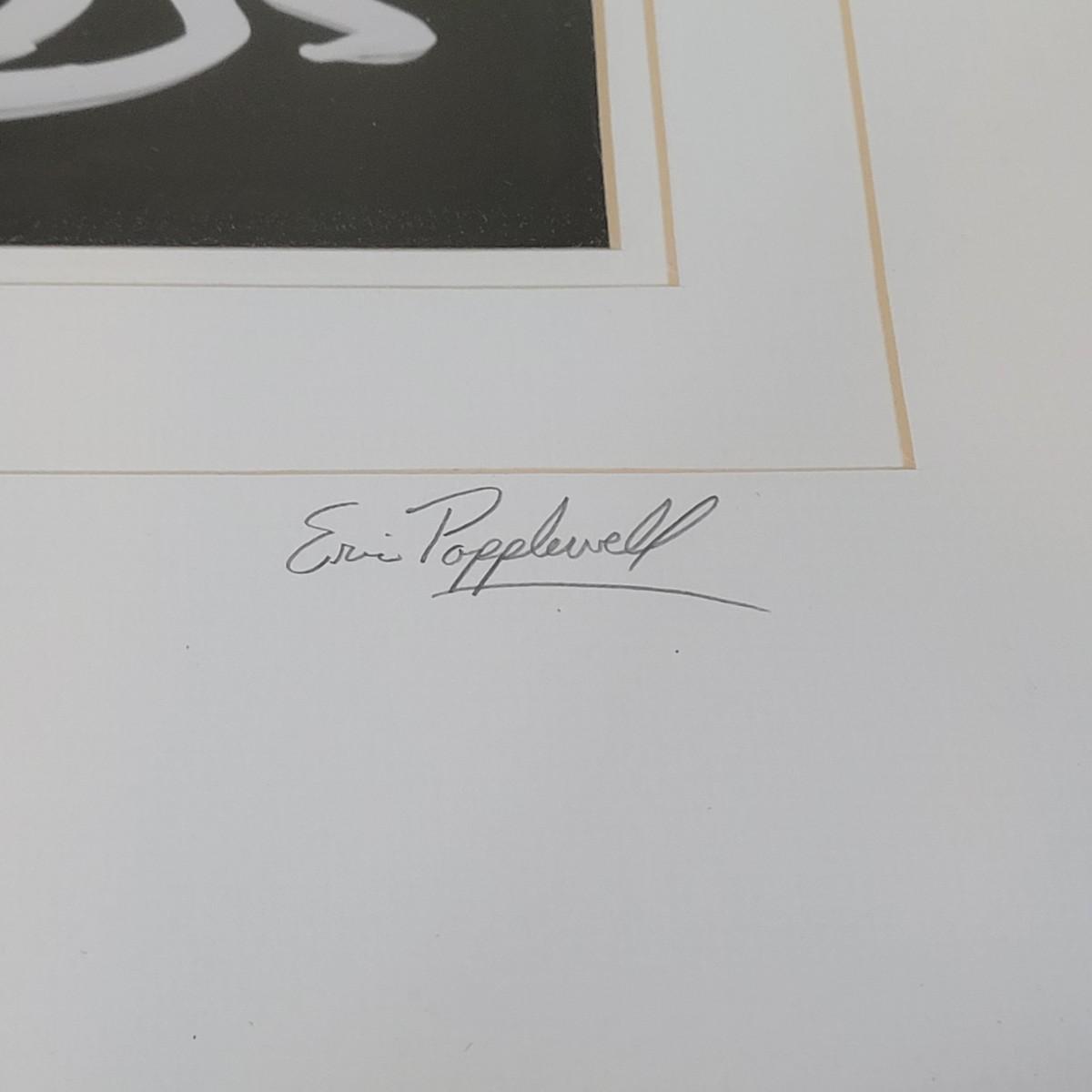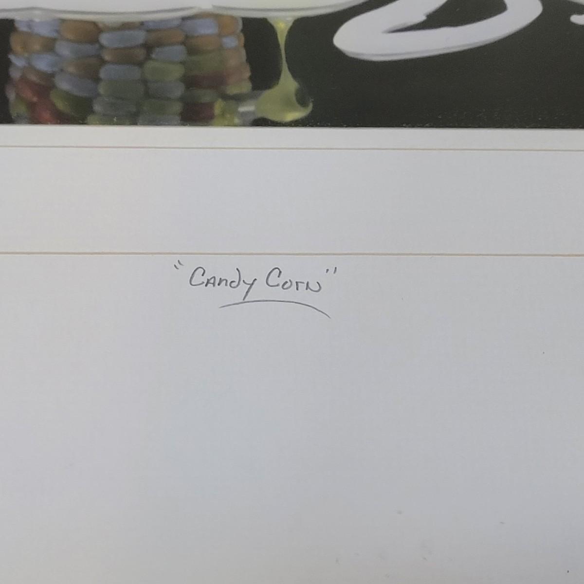 This is an original photograph titled "Candy Corn" by artist Eric Popplewell. This piece depicts a colorful ear of Corn dripping color from a tube at its side. This piece is triple matted, under glass, and in a wooden frame. It is signed, titled, and numbered in pencil. The frame measures 17" x 21"H. Includes an attached metal wire for hanging.