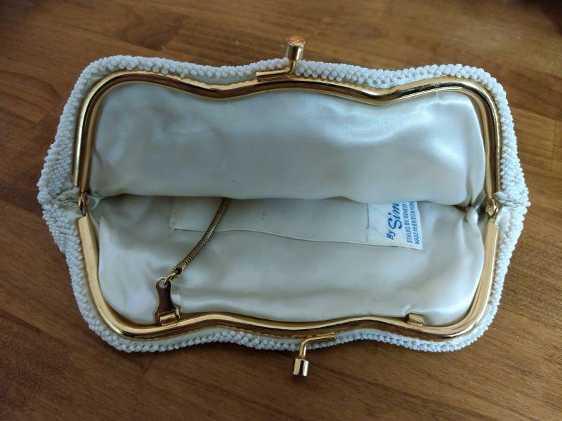 Ernest Blum Mid-Century White Bead Chain Clutch by Simon