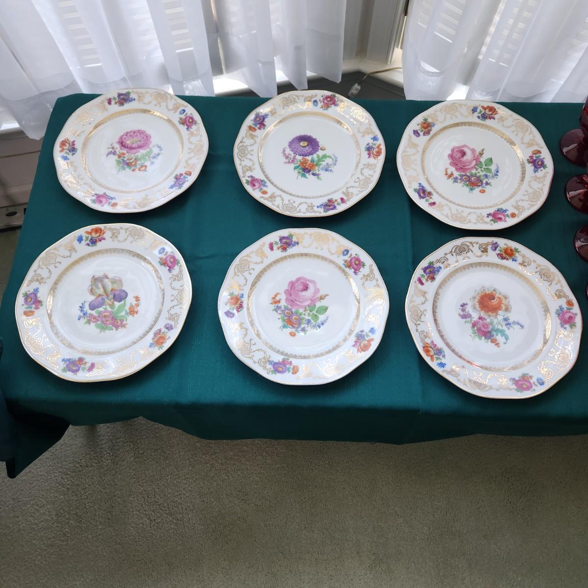 Erphila Czecho-Slovakia Floral Plates Set Of 6  10.5"
