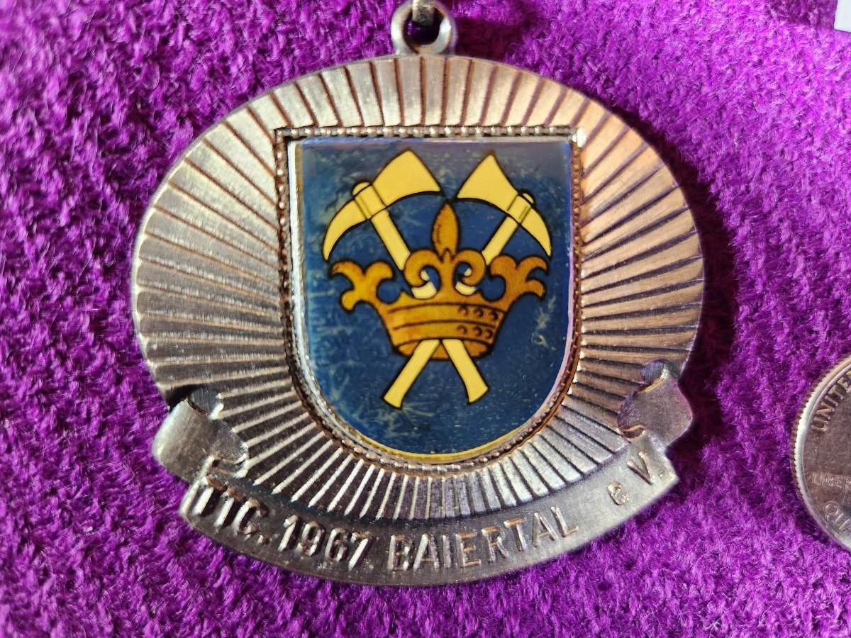 Volksmarching (from German "Volksmarsch", people's march) is a form of non-competitive fitness walking that developed in Europe in the mid-late 1960s. By 1968, the International Federation of Popular Sports (better known as the "IVV") was formed by Germany, Austria, Liechtenstein and Switzerland. A volksmarch is essentially a more formalized version of a hike, in which participants check in at the start and proceed along a prescribed route“”usually ten kilometers, or 6.2 miles. This medal is from the estate of a life-long military family who were stationed for many years in German. See photos for size and details.
