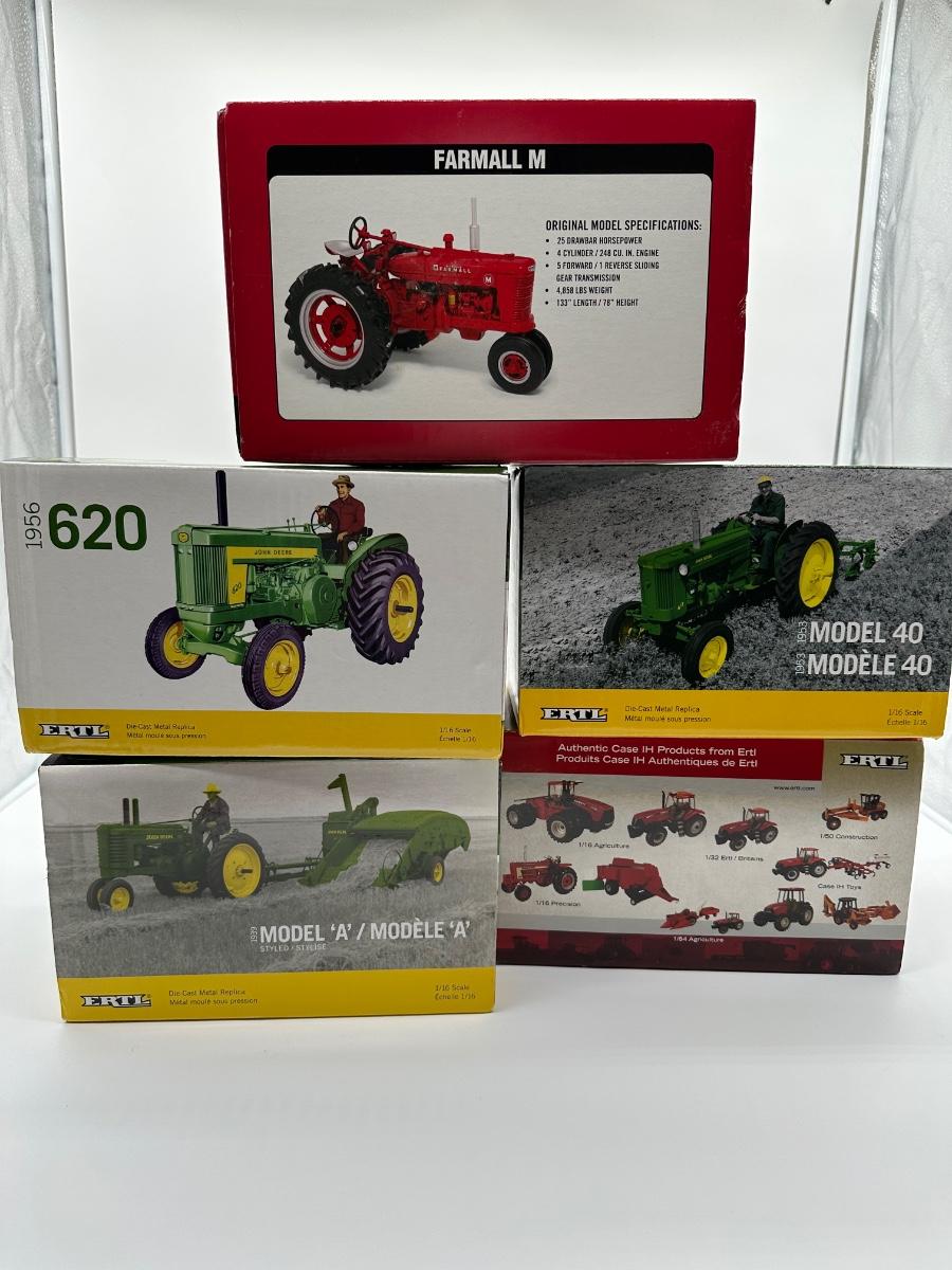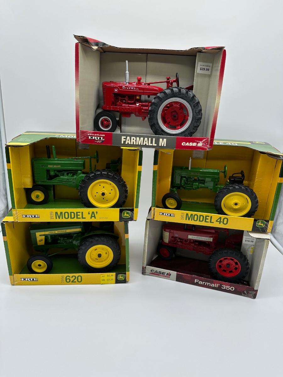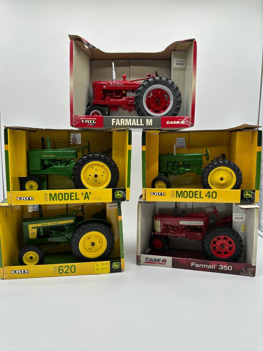 ERTL 1/16 Die-Cast Tractor Lot – John Deere & Farmall (5 Tractors, Boxed)