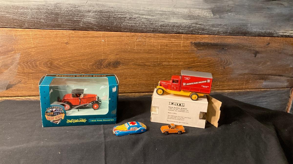 ERTL COLLECTIBLE AUTOS, TOOTSIE TRUCK AND TIN CAR