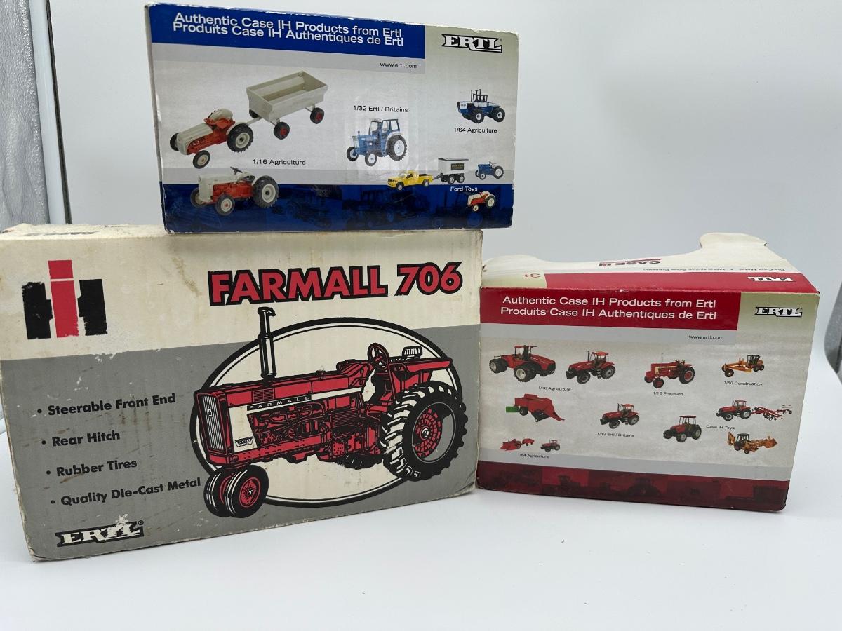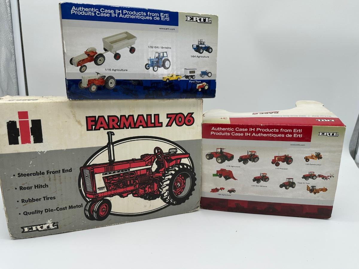 ERTL Die-Cast Tractor Lot – Farmall 706, Farmall A & Ford 640 w/ Original Boxes