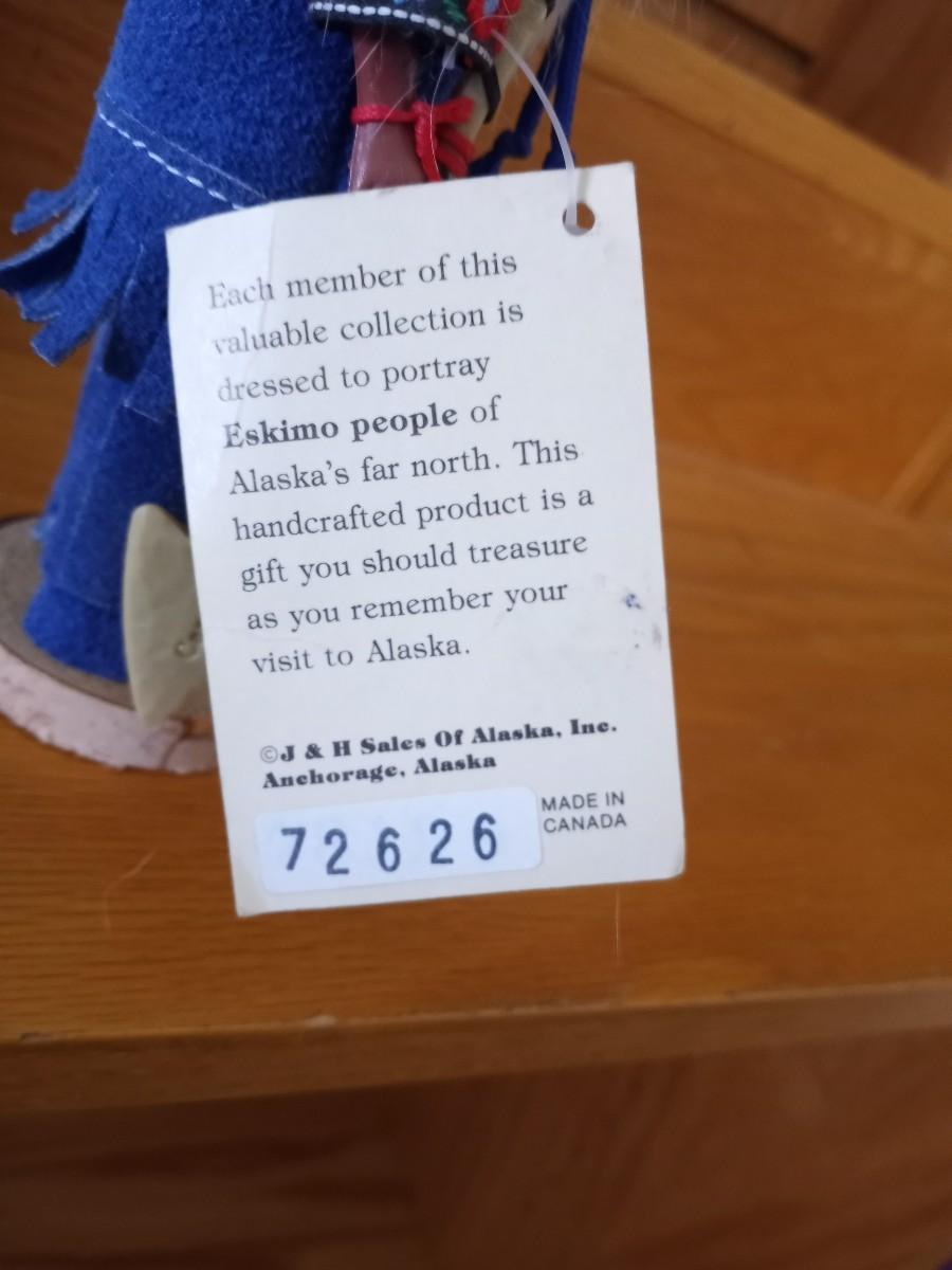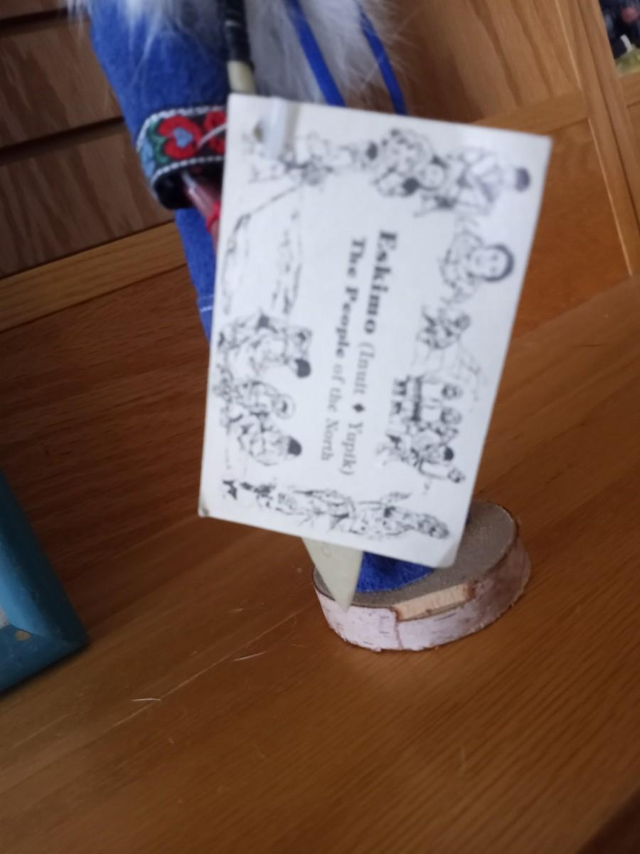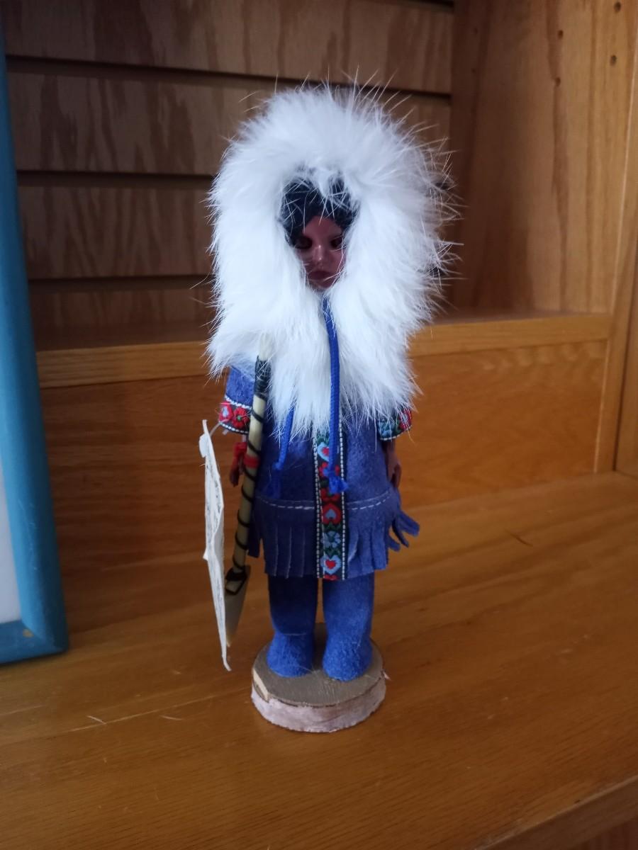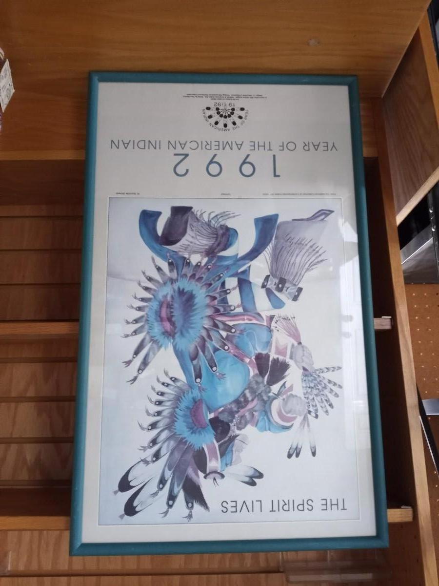 ESKIMO DOLL AND FRAMED 1992 FRAMED POSTER :YEAR OF THE AMERICAN INDIAN"