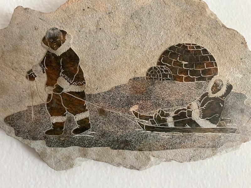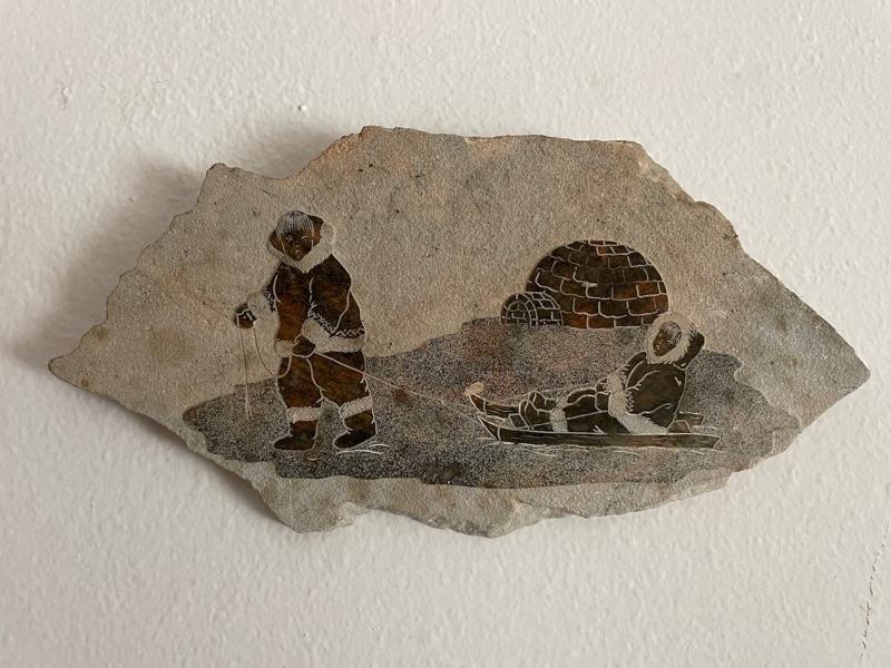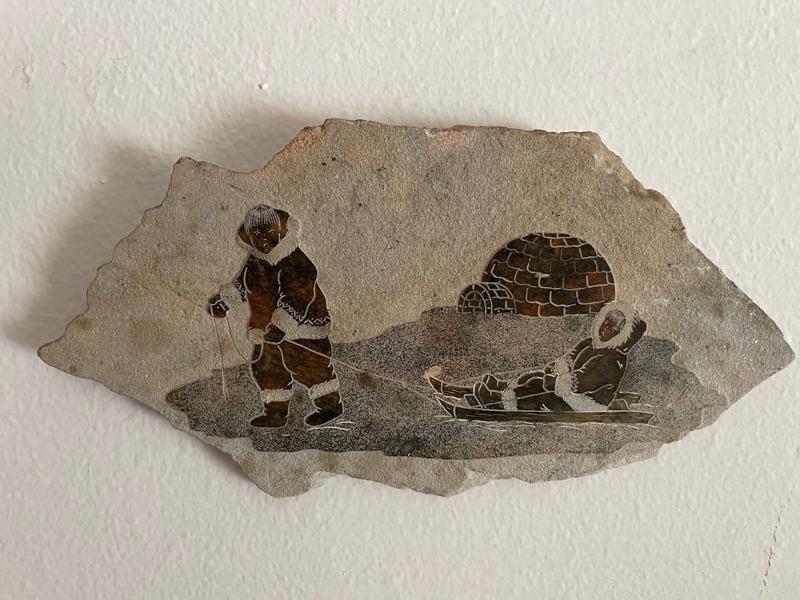 On stone  print looks feels etched o stone  like a fossil imprint almost 6 x 11
