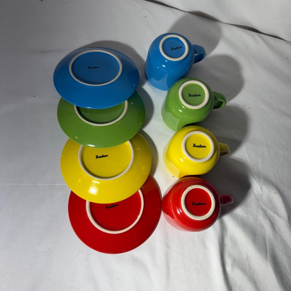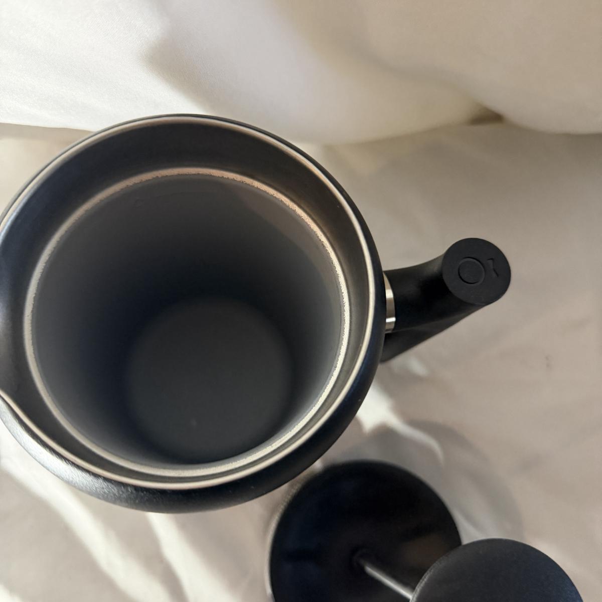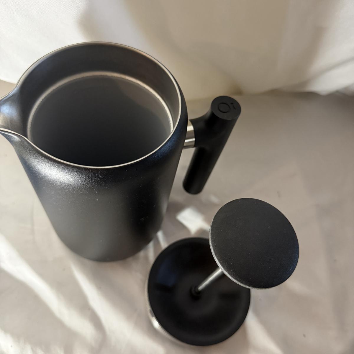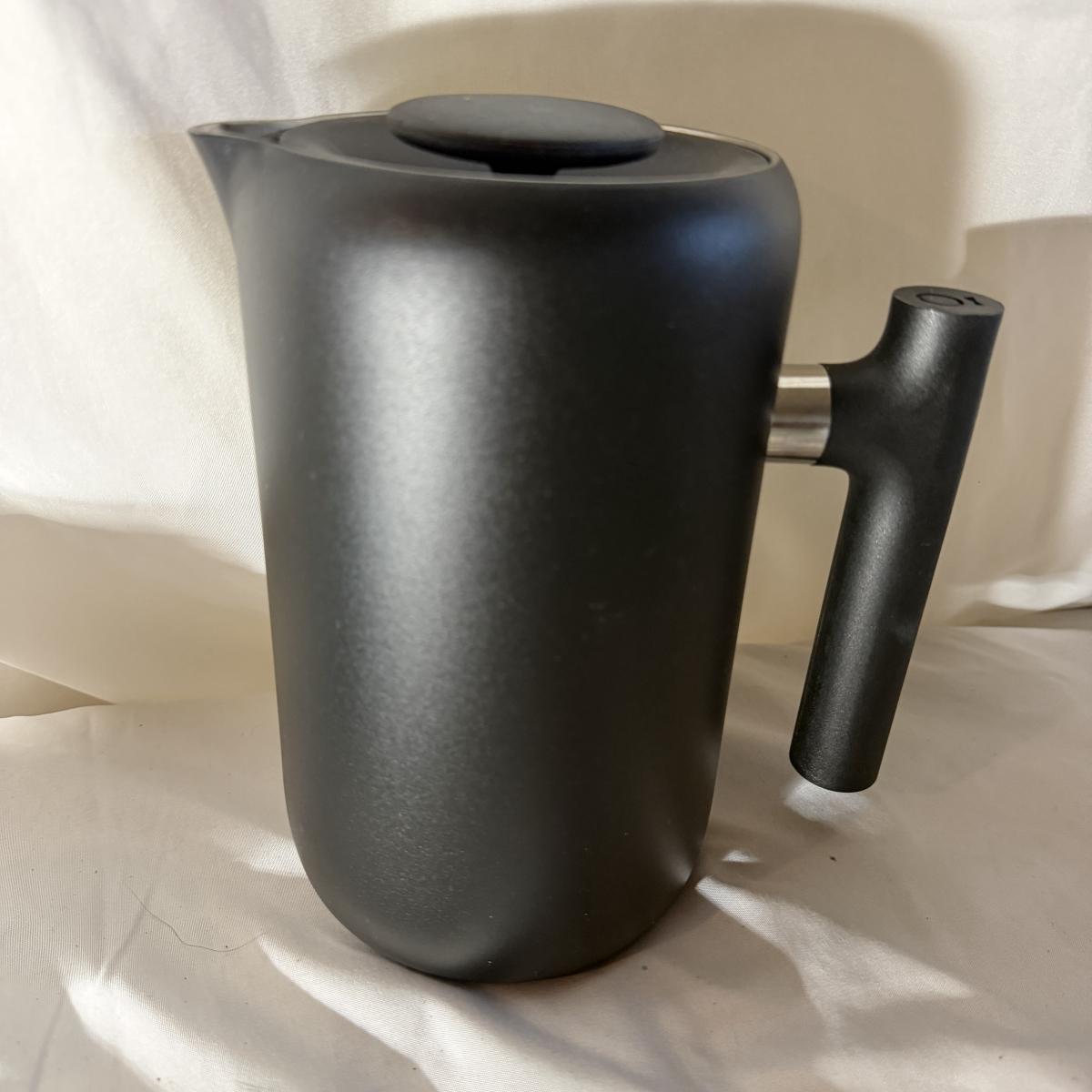 Lot includes a Fellow French press, Nespresso Aeroccino 3 milk frother, Four Bruntmor ceramic cups and saucers, Secura Coffee and spice grinder and two metal tampers. Secura grinder measures 4”D x 8”H. Grinder and frother both powered on when plugged in.