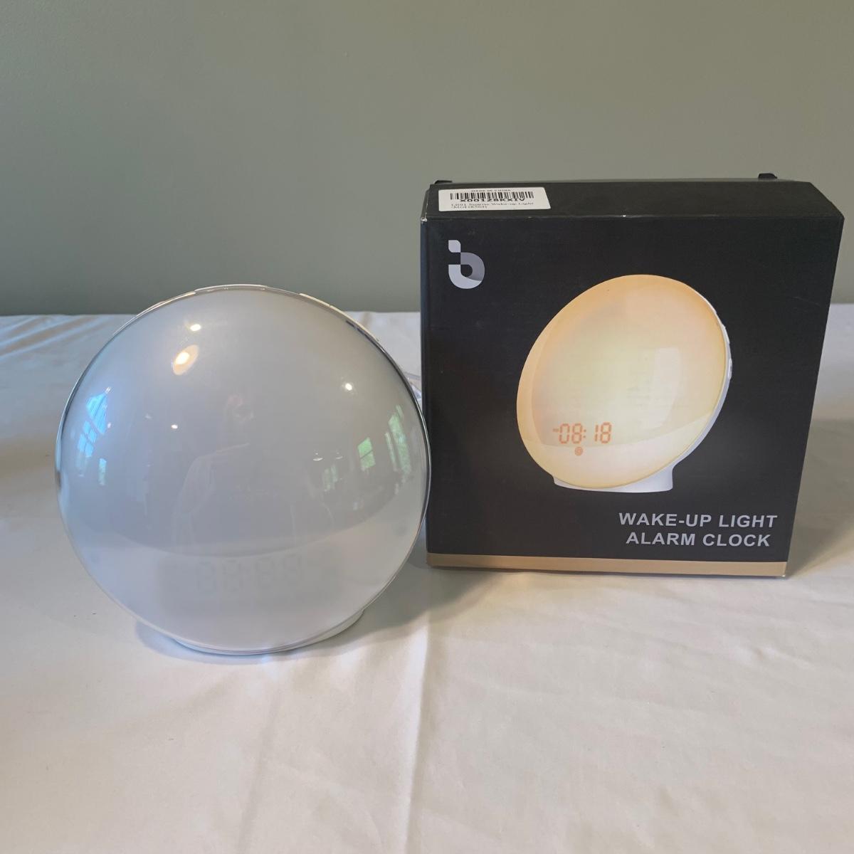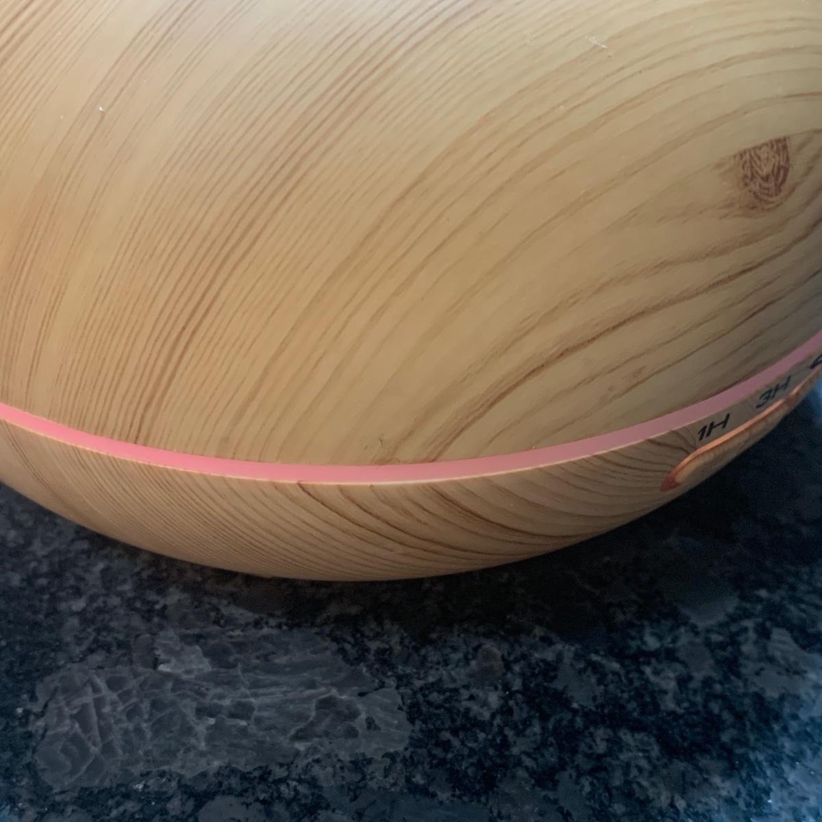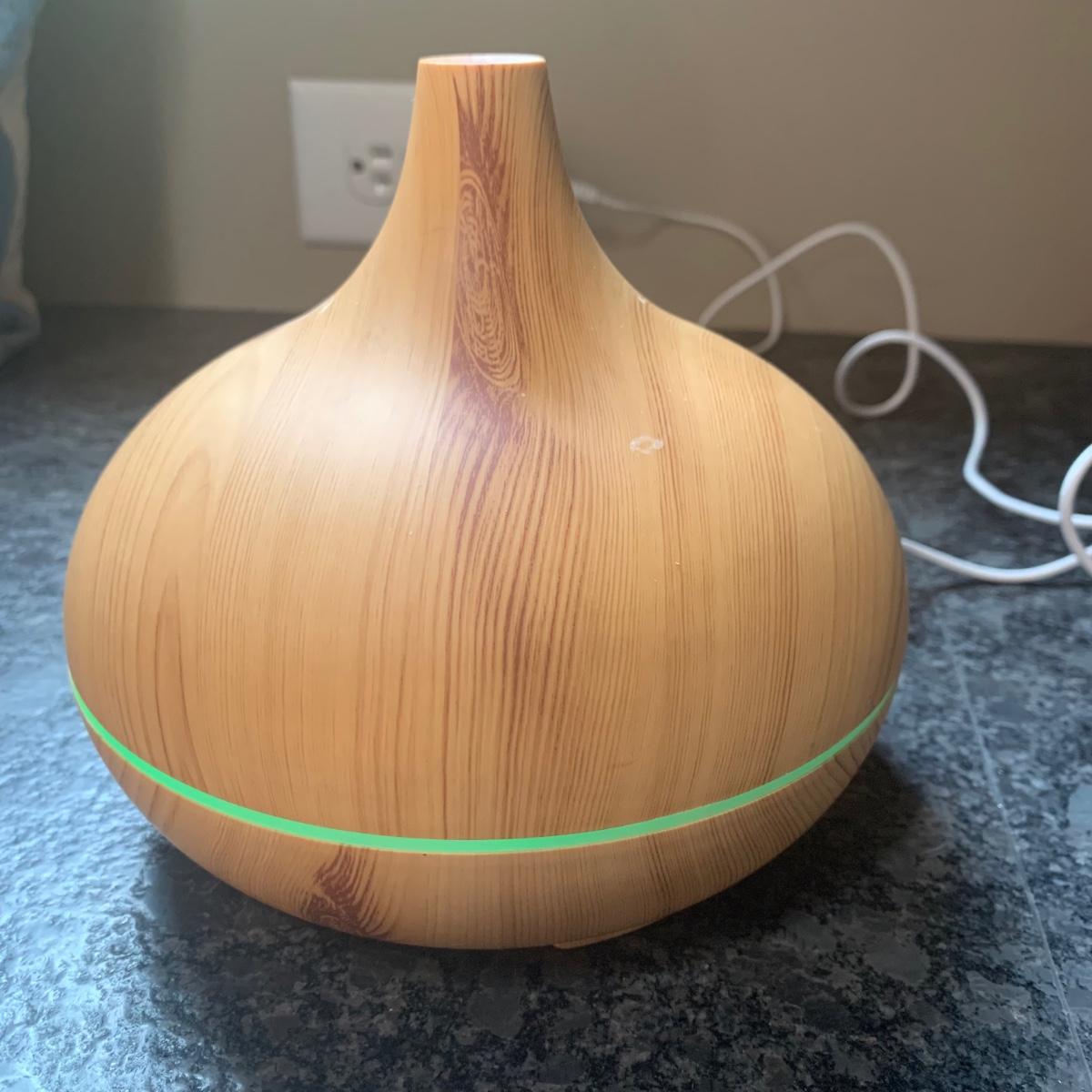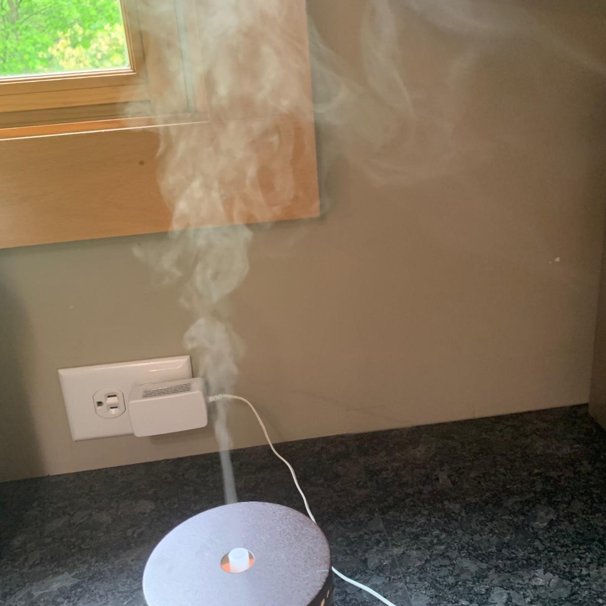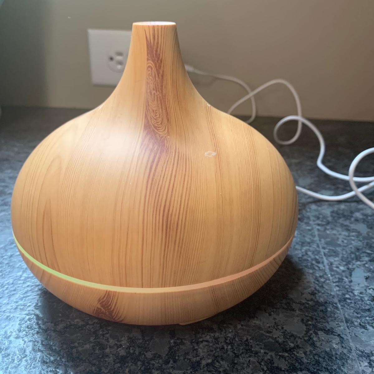 Keep a mellow mood in your home with these relaxing items. There are two essential oil diffusers. Both powered on and misted when plugged in. They both have color changing lights. The cylindrical diffuser is 3.5”D x 5.75”H. There is also an unopened cinnamon essential oil to go with the diffusers. Also included in this lot is a wake-up light alarm clock that will simulate the sunrise and sunset. It has gentle alarm sounds. And finally, a pink salt rock nightlight.
