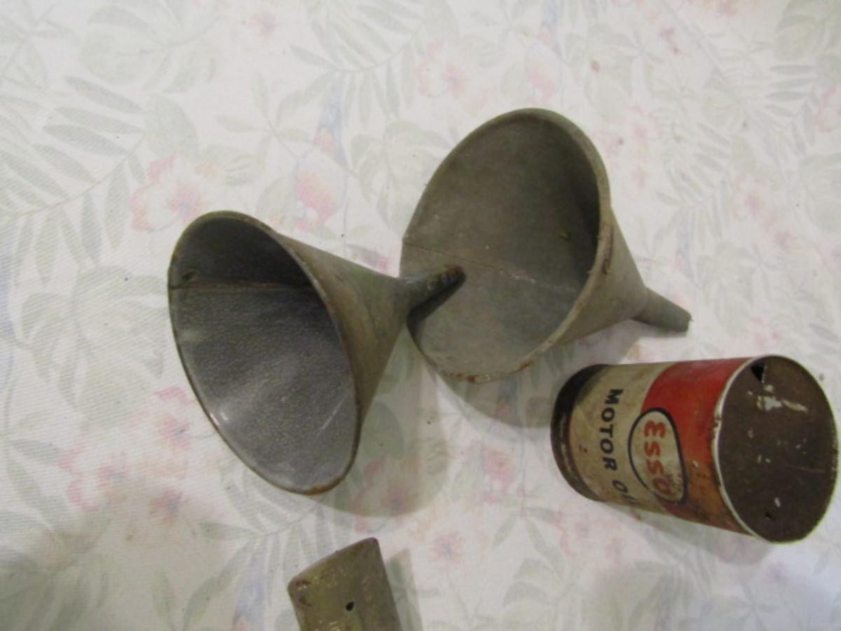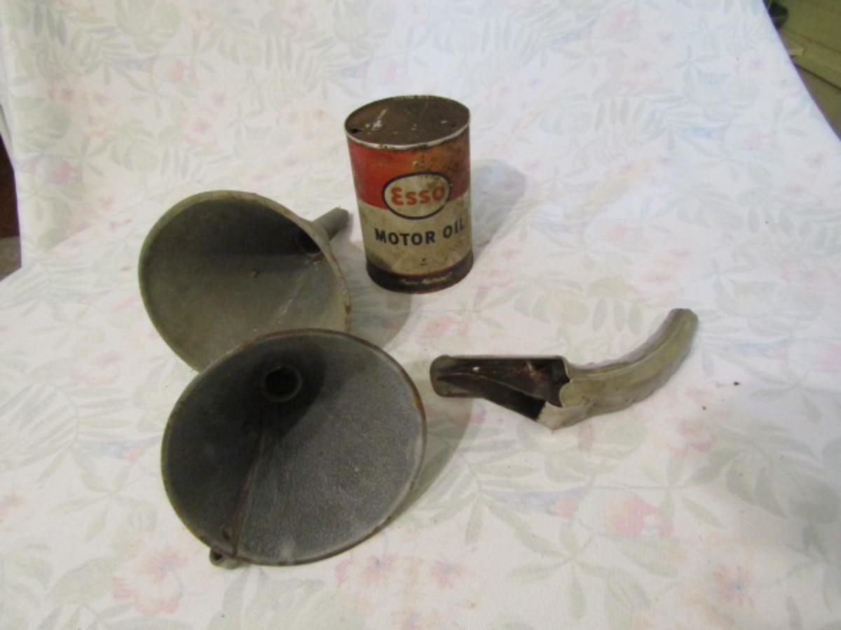 Esso Oil Can, Metal Funnels, and Opener/Pouring Spout