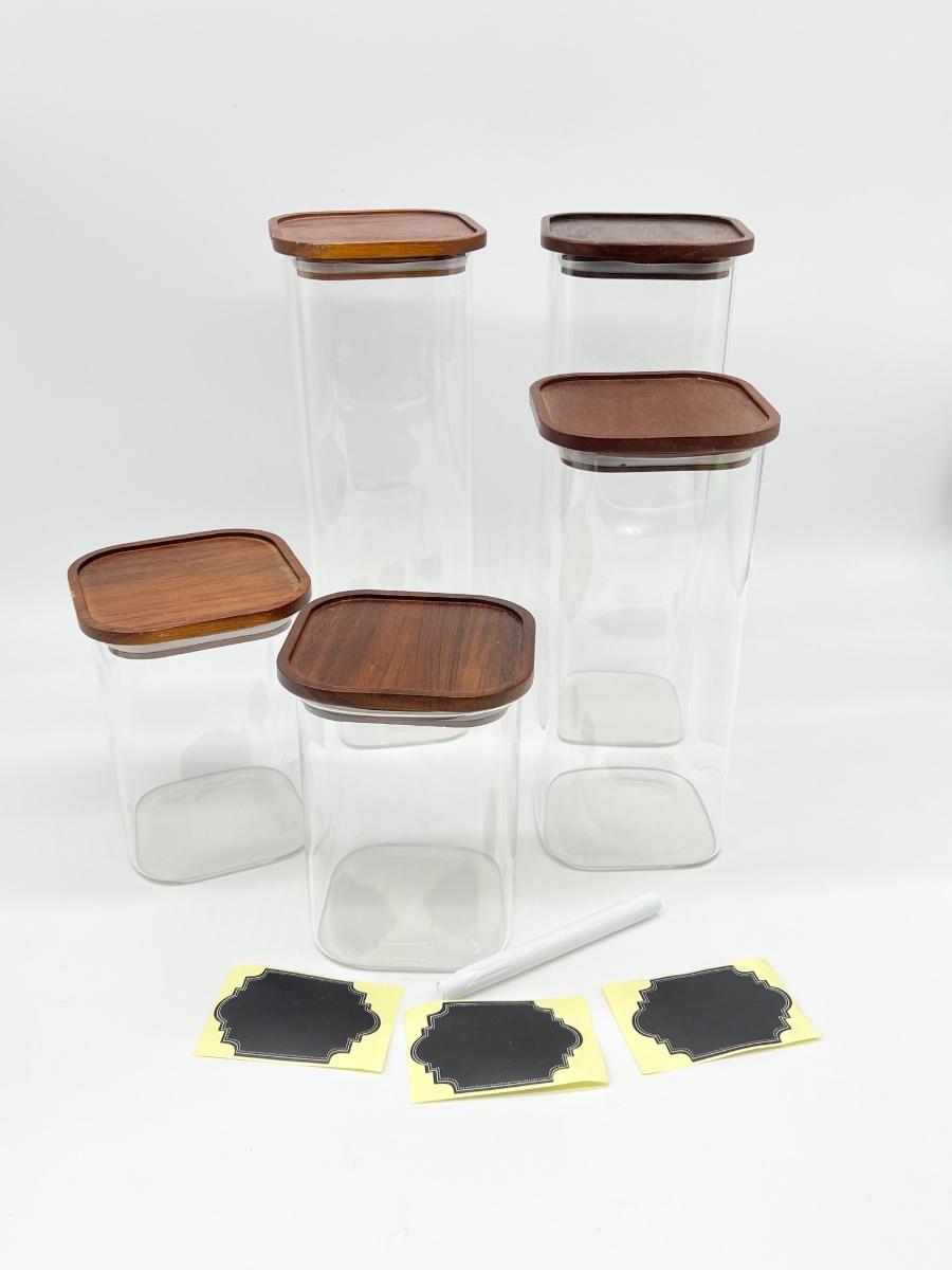 ESSOS ~ Five (5) ~ Glass with Wood Lid Acacia Airtight Storage Containers