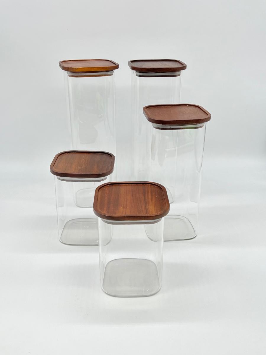 ESSOS ~ Five (5) ~ Glass with Wood Lid Acacia Airtight Storage Containers