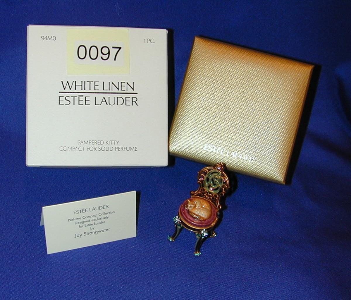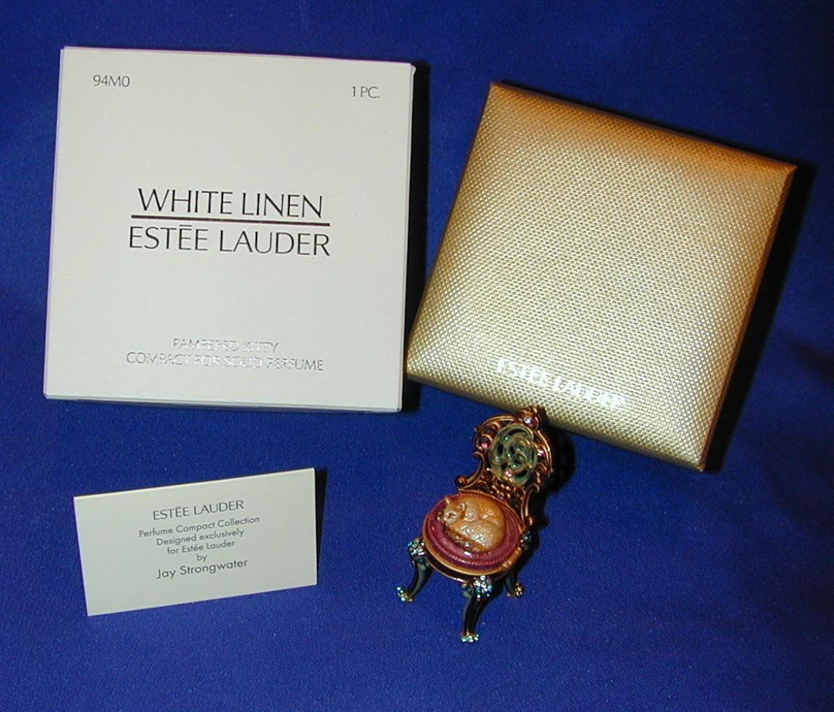 Este Lauder By Jay Strongwater White Linen Pampered Kitty Solid Perfume Compact Lot 97