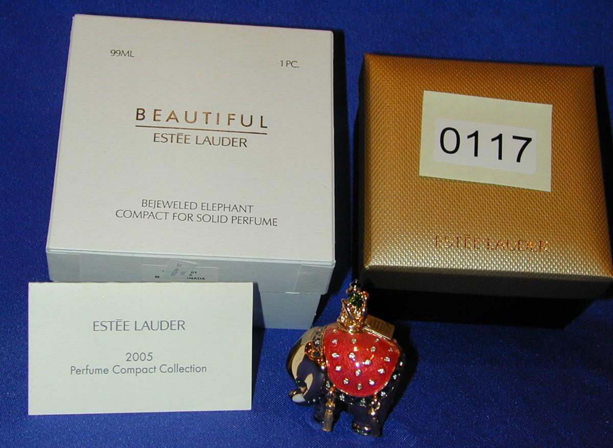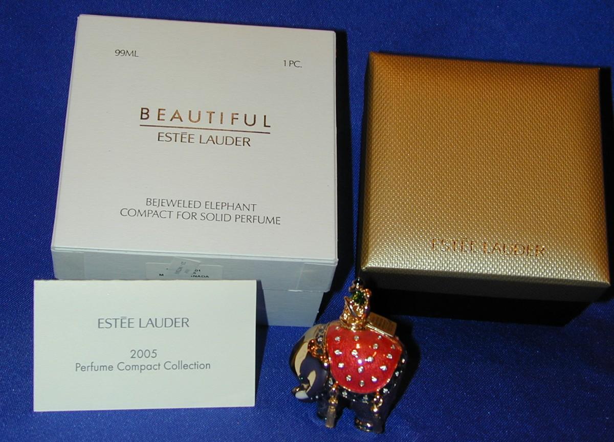 Estee Lauder Beautiful Bejeweled Elephant Solid Perfume Compact Lot 117