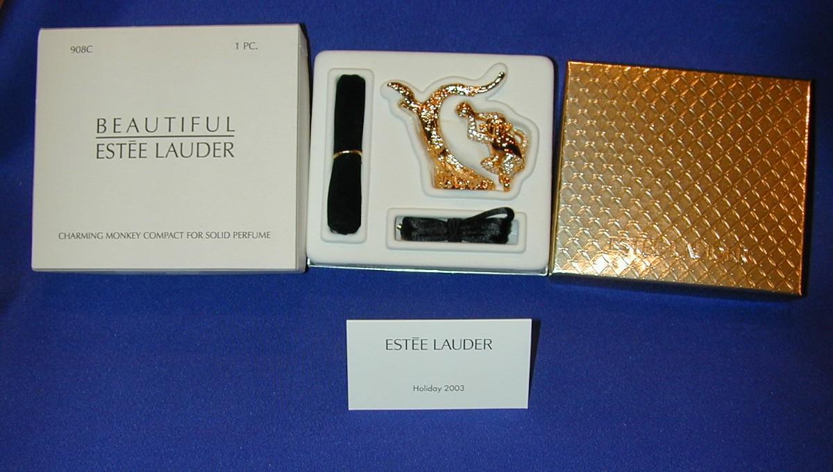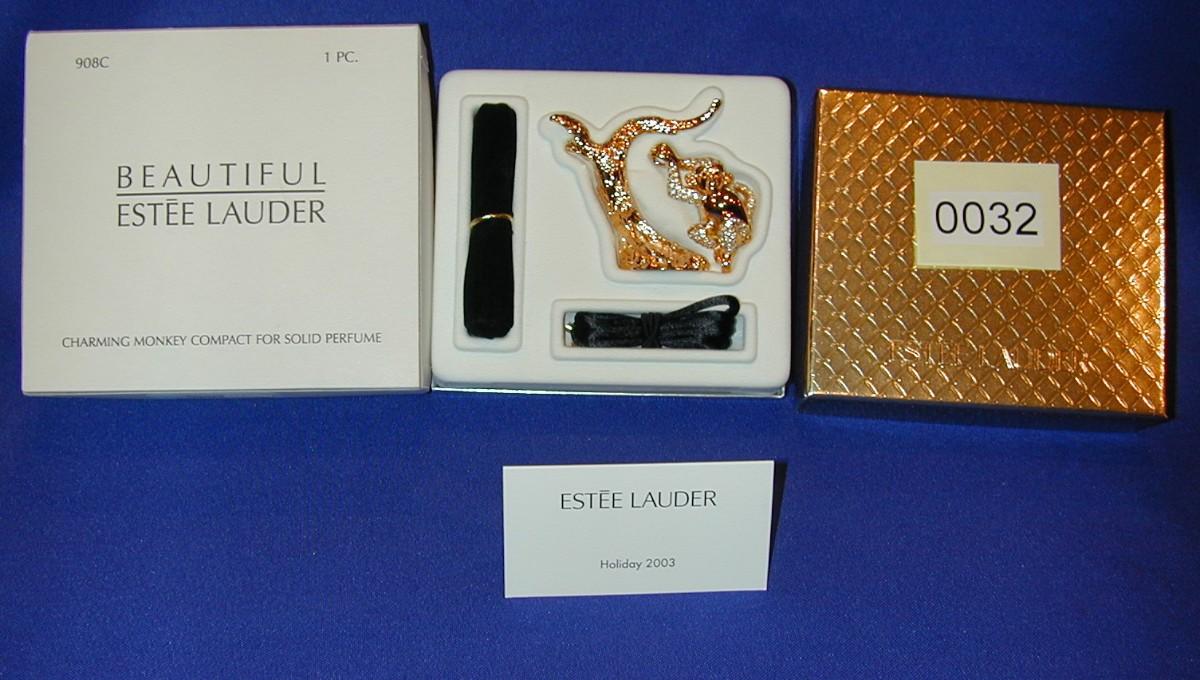 Estee Lauder Beautiful Charming Monkey Solid Perfume Compact Lot 32