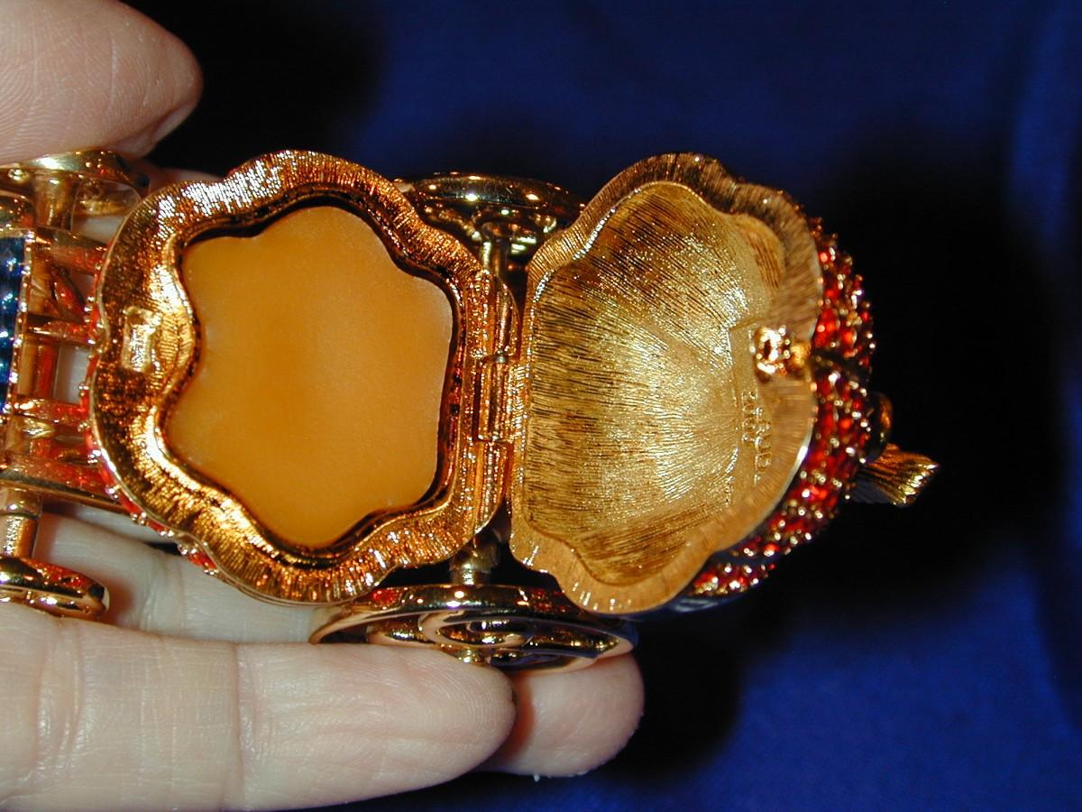 All compacts have been cabinet displayed and are full or almost full of perfume (see photos) - any that are well used will be noted. We cannot guarantee the perfume quality as solid perfume changes/shrinks/discolors over time (see photos). The compacts are photographed with what they come with (* If the box is shown , the box is included - if not, not included). We have examined each one and any obvious flaws will be noted. We offer nationwide shipping - see terms & conditions section. Never a buyers premium, credit card fee, or reserve. All items start at just $10.