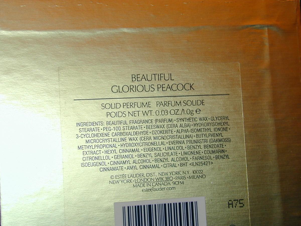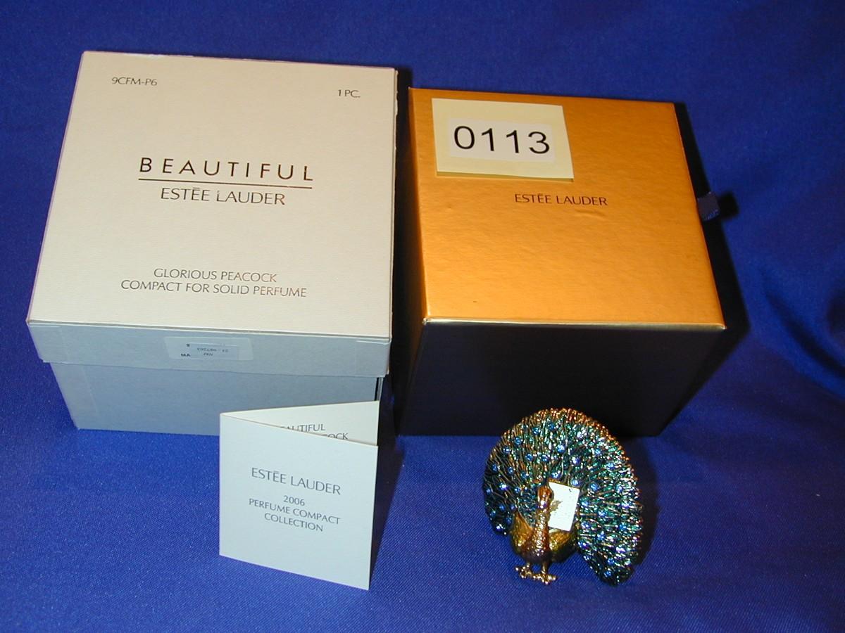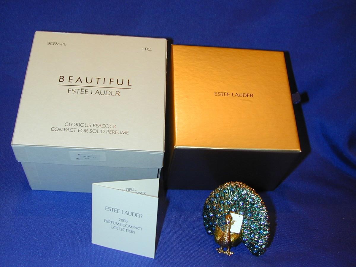 Estee Lauder Beautiful Glorious Peacock Solid Perfume Compact Lot 113