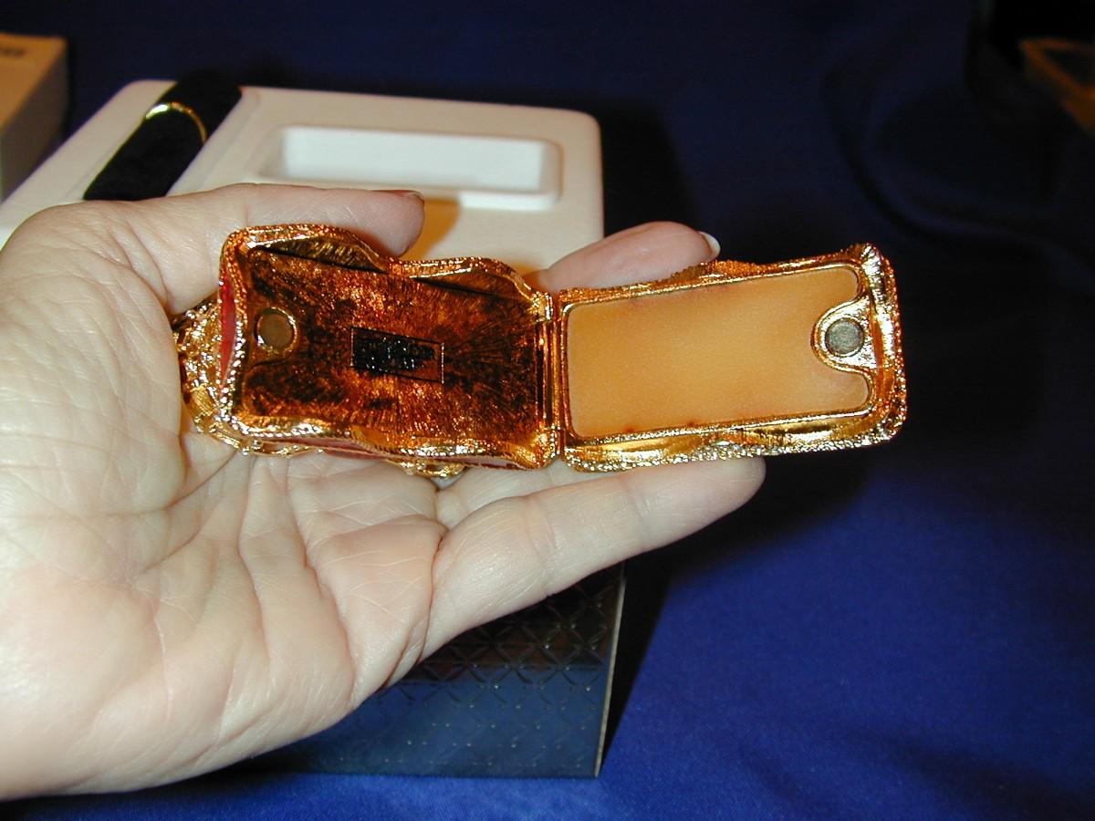 All compacts have been cabinet displayed and are full or almost full of perfume (see photos) - any that are well used will be noted. We cannot guarantee the perfume quality as solid perfume changes/shrinks/discolors over time (see photos). The compacts are photographed with what they come with (* If the box is shown , the box is included - if not, not included). We have examined each one and any obvious flaws will be noted. We offer nationwide shipping - see terms & conditions section. Never a buyers premium, credit card fee, or reserve. All items start at just $10.