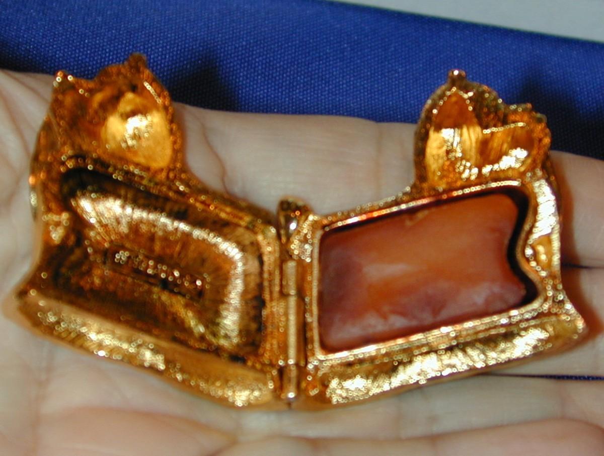 All compacts have been cabinet displayed and are full or almost full of perfume (see photos) - any that are well used will be noted. We cannot guarantee the perfume quality as solid perfume changes/shrinks/discolors over time (see photos). The compacts are photographed with what they come with (* If the box is shown , the box is included - if not, not included). We have examined each one and any obvious flaws will be noted. We offer nationwide shipping - see terms & conditions section. Never a buyers premium, credit card fee, or reserve. All items start at just $10.