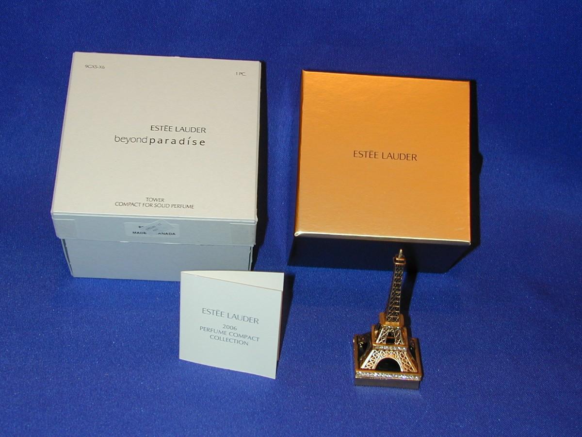 Estee Lauder Beyond Paradise Eiffel Tower Solid Perfume Compact Lot 8