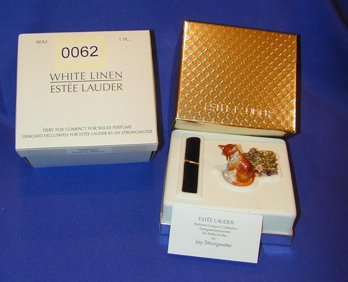 Estee Lauder By Jay Strongwater White Linen Fiery Fox Solid Perfume Compact Lot 62