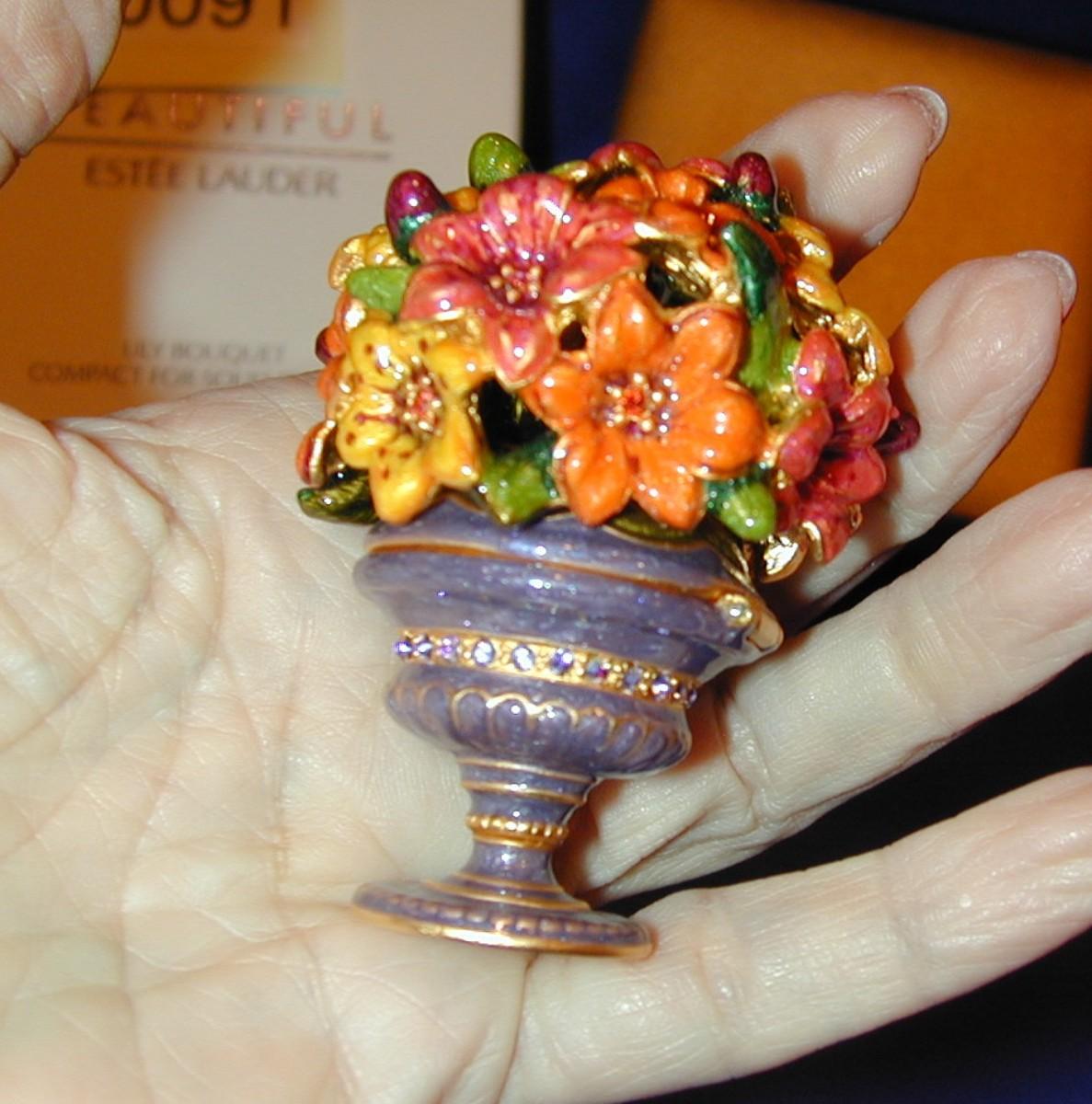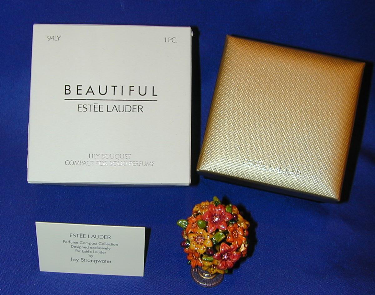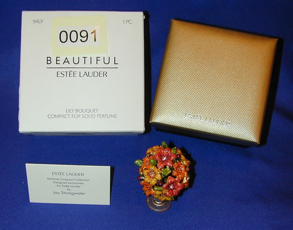 Estee Lauder By Jay Strongwater Beautiful Lily Bouquet Solid Perfume Compact Lot 91