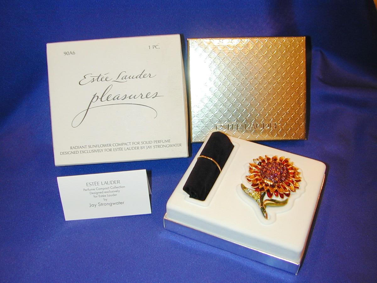 Estee Lauder By Jay Strongwater Pleasures Radiant Sunflower Solid Perfume Compact Lot 153