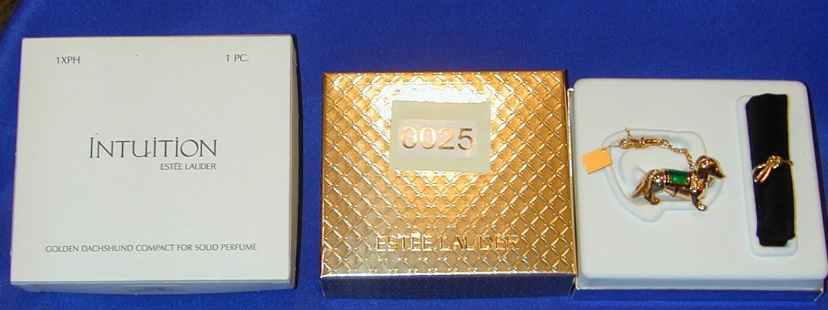 Estee Lauder Intuition Golden Dachshund Solid Perfume Compact Lot 25