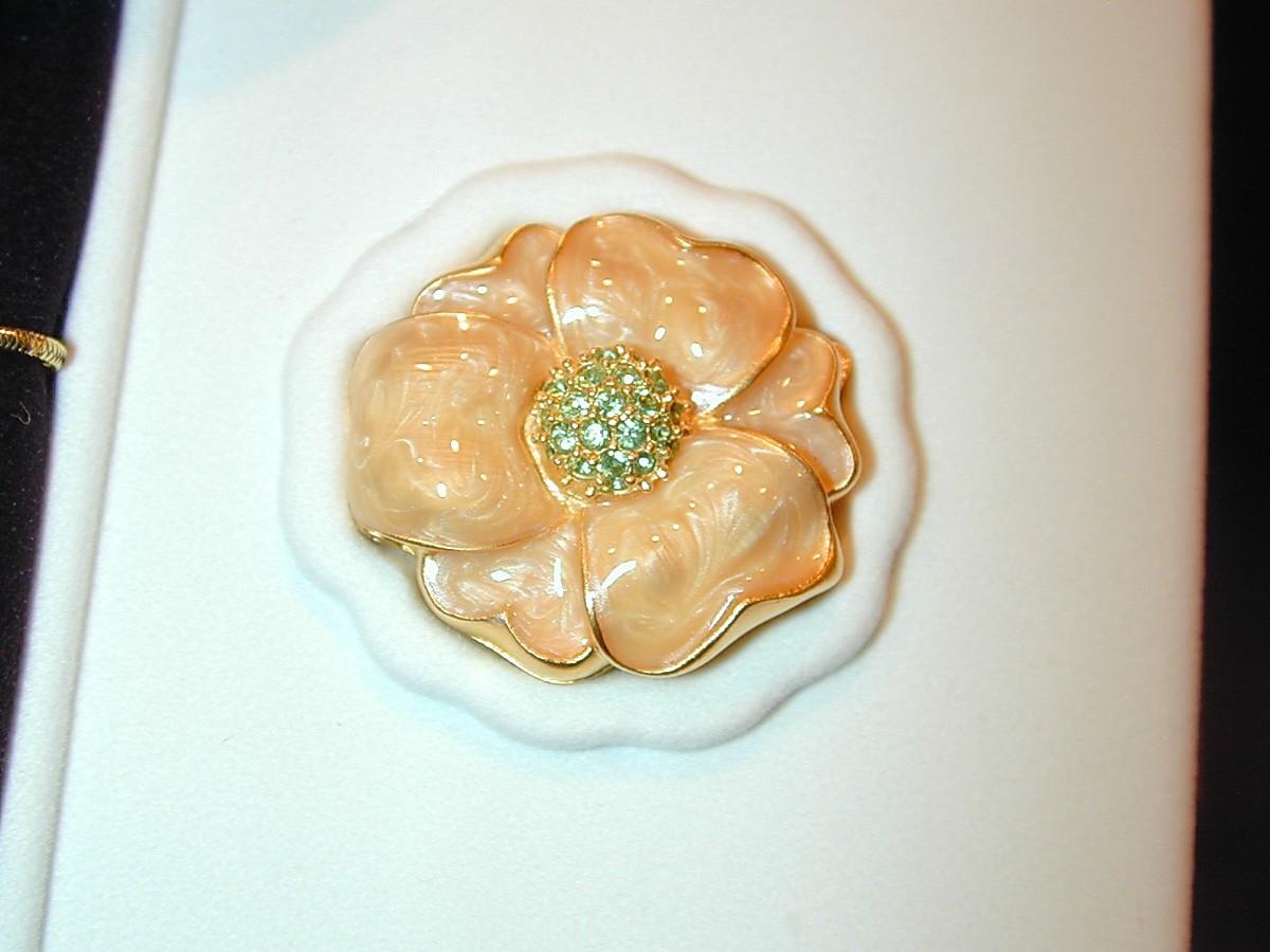 All compacts have been cabinet displayed and are full or almost full of perfume (see photos) - any that are well used will be noted. We cannot guarantee the perfume quality as solid perfume changes/shrinks/discolors over time (see photos). The compacts are photographed with what they come with (* If the box is shown , the box is included - if not, not included). We have examined each one and any obvious flaws will be noted. We offer nationwide shipping - see terms & conditions section. Never a buyers premium, credit card fee, or reserve. All items start at just $10.