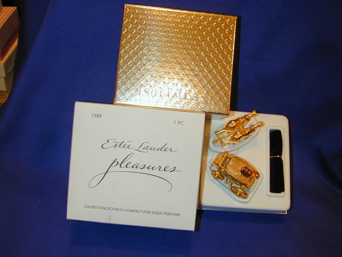Estee Lauder Pleasures Gilded Stagecoach Solid Perfume Compact Lot 126