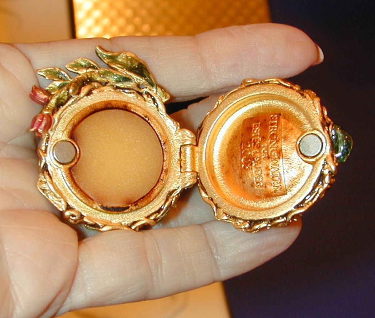 All compacts have been cabinet displayed and are full or almost full of perfume (see photos) - any that are well used will be noted. We cannot guarantee the perfume quality as solid perfume changes/shrinks/discolors over time (see photos). The compacts are photographed with what they come with (* If the box is shown , the box is included - if not, not included). We have examined each one and any obvious flaws will be noted. We offer nationwide shipping - see terms & conditions section. Never a buyers premium, credit card fee, or reserve. All items start at just $10.