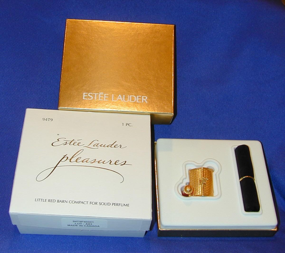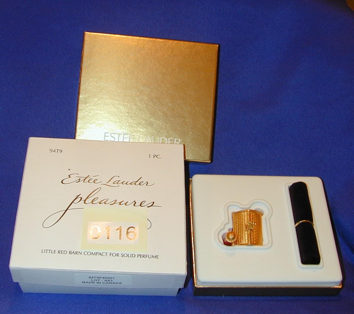 Estee Lauder Pleasures Little Red Barn Solid Perfume Compact Lot 116
