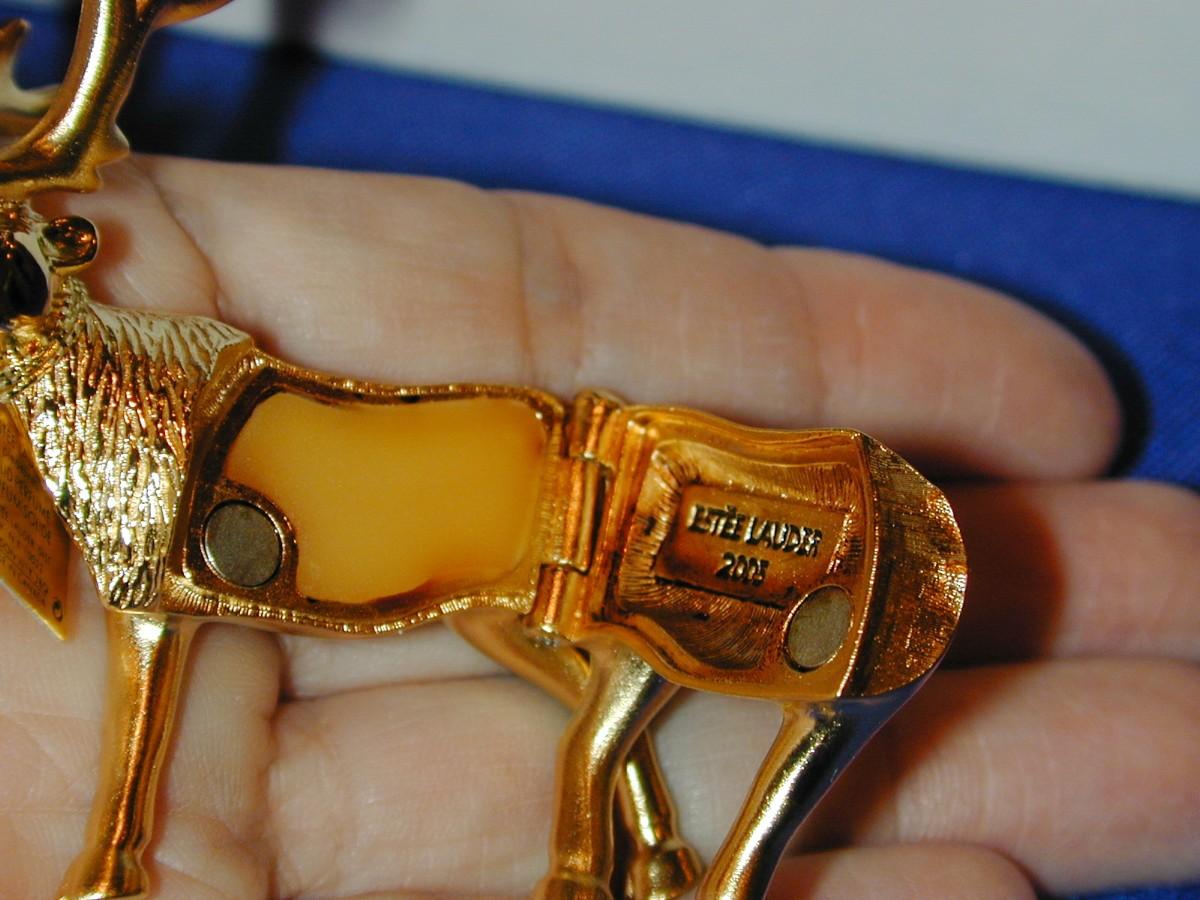 ONE ANTLER HAS A HAIRLINE - SEE PHOTO, IT IS IN TACT. All compacts have been cabinet displayed and are full or almost full of perfume (see photos) - any that are well used will be noted. We cannot guarantee the perfume quality as solid perfume changes/shrinks/discolors over time (see photos). The compacts are photographed with what they come with (* If the box is shown , the box is included - if not, not included). We have examined each one and any obvious flaws will be noted. We offer nationwide shipping - see terms & conditions section. Never a buyers premium, credit card fee, or reserve. All items start at just $10.