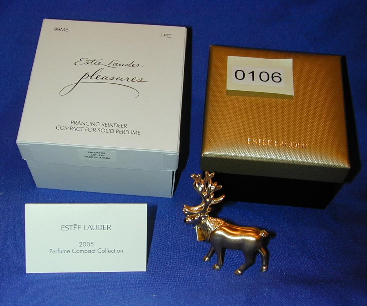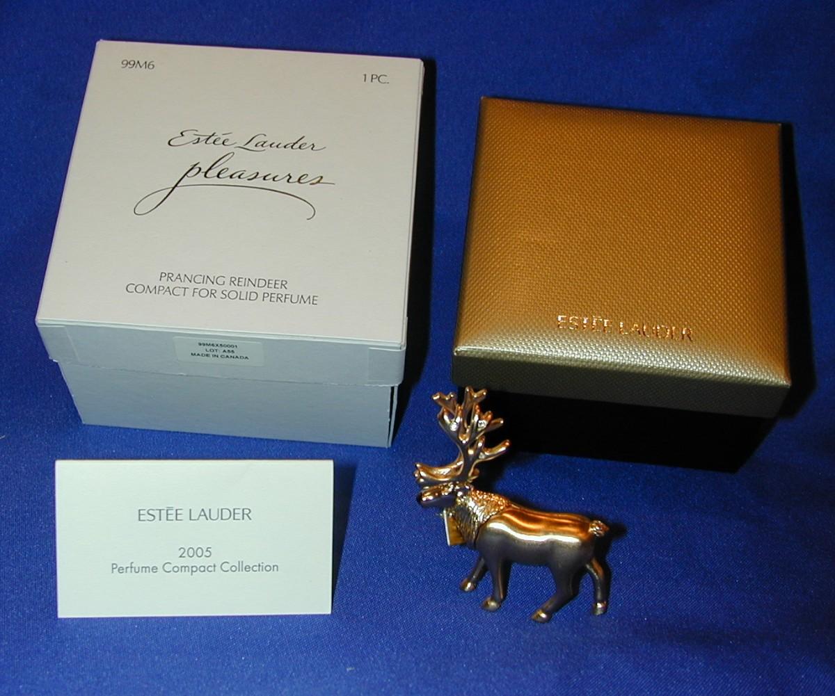 Estee Lauder Pleasures Prancing Reindeer Solid Perfume Compact Lot 106 - READ