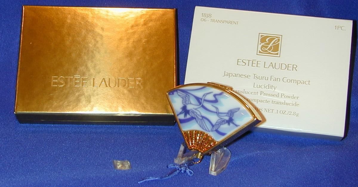 Estee Lauder Pressed Powder Lucidity Compact 06 Transparent Japanese Tsuru Fan Lot 244
